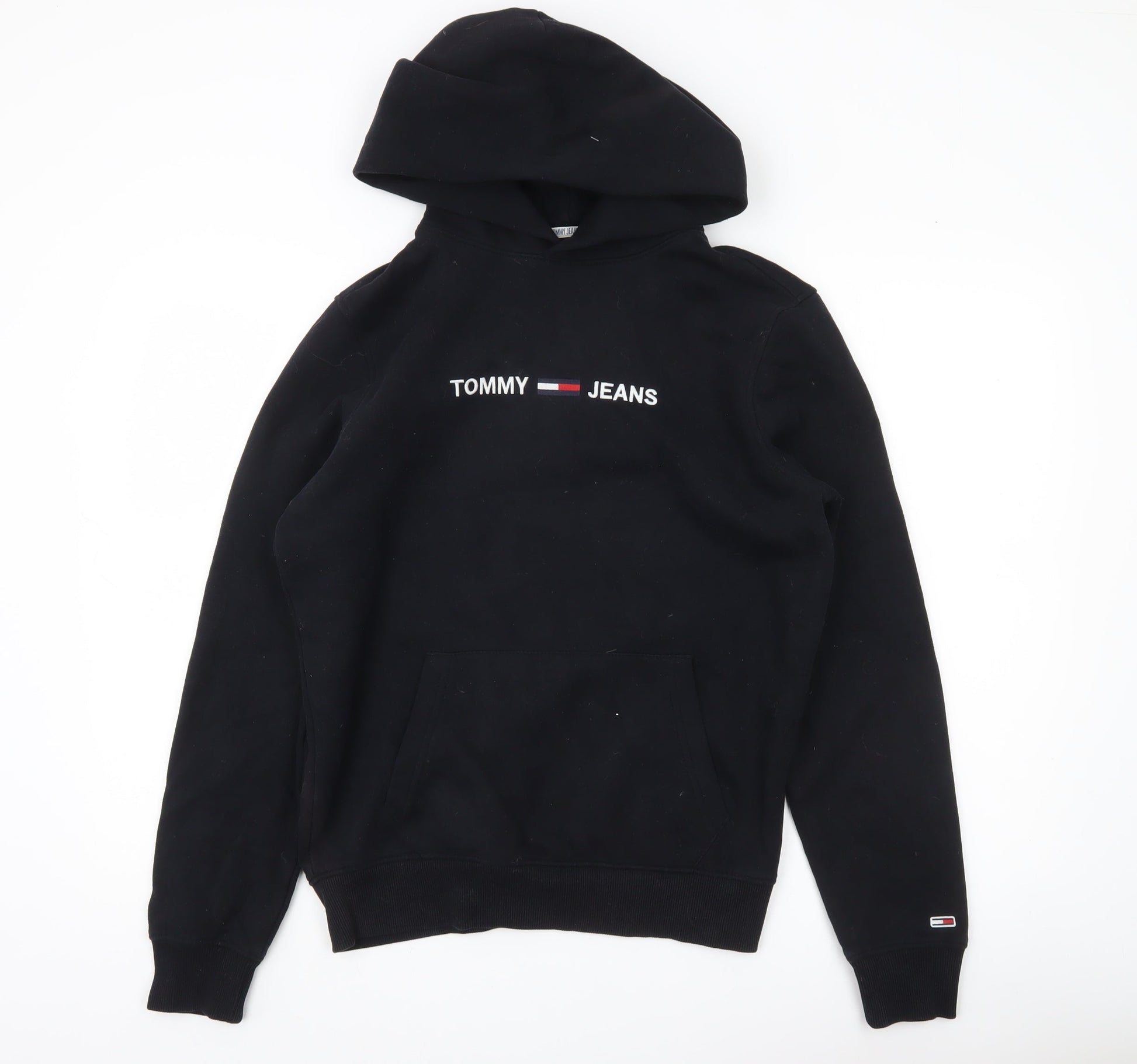 Tommy Jeans Men’s Black Pullover Hoodie Small Logo Embroidered