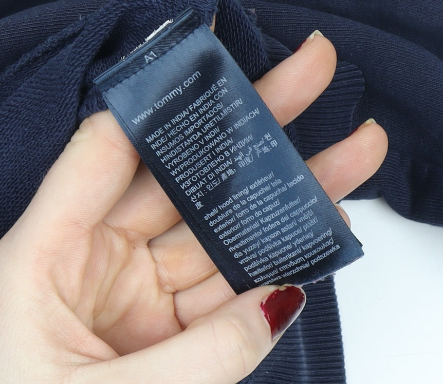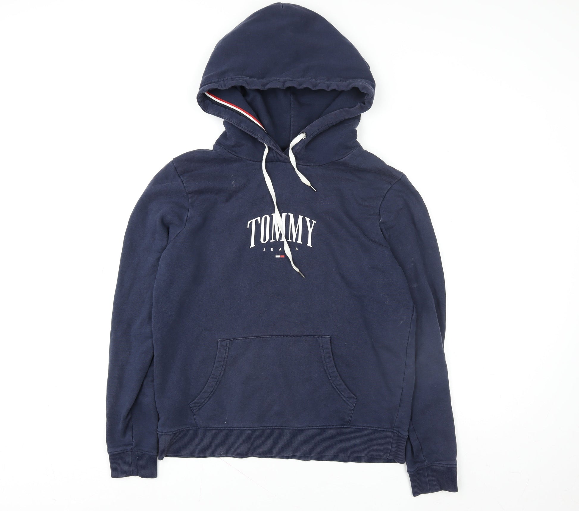 Tommy Jeans Men’s Blue Pullover Hoodie L Logo Cotton Fleece