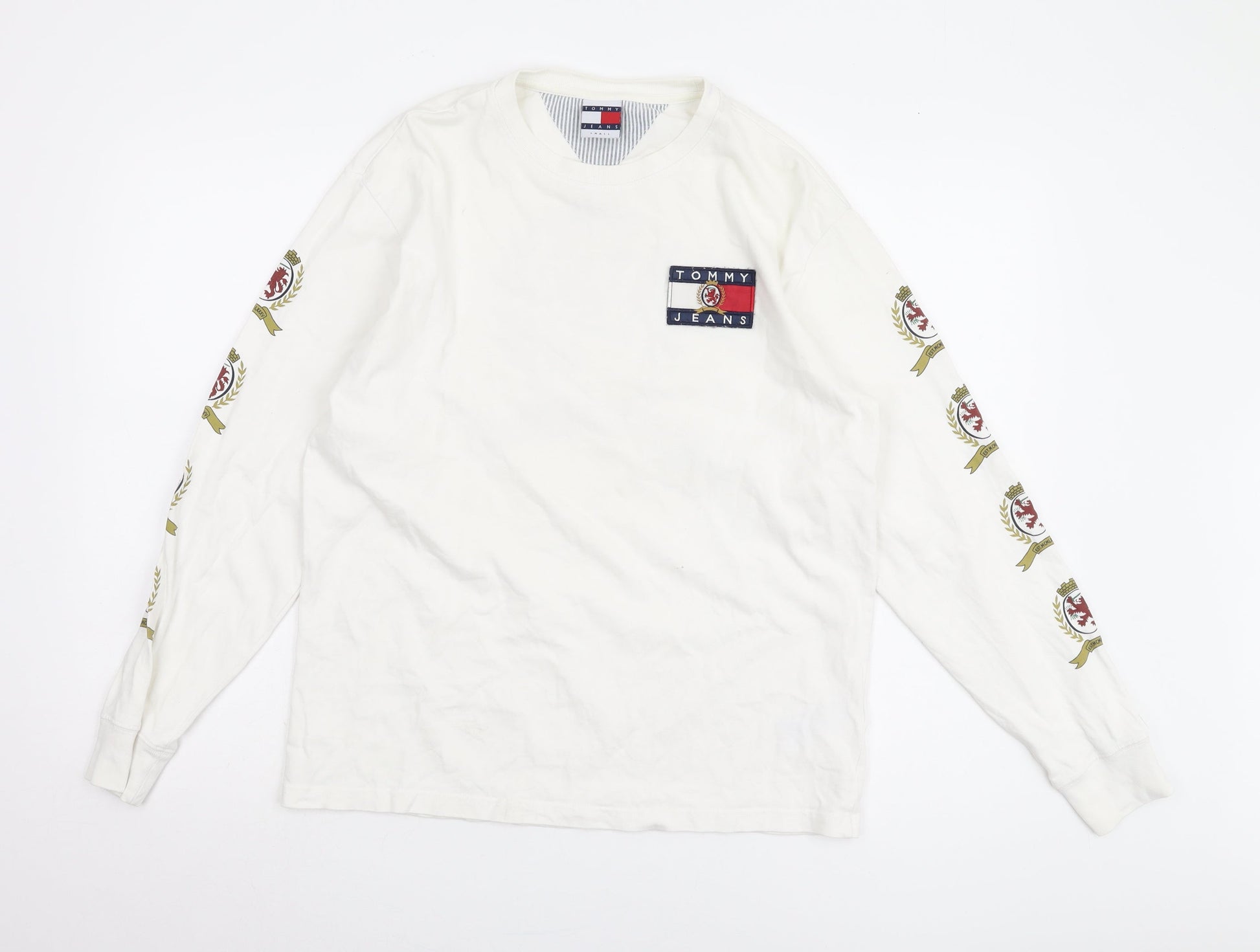 Tommy Jeans Men White Long Sleeve Crew Neck T-Shirt Size S