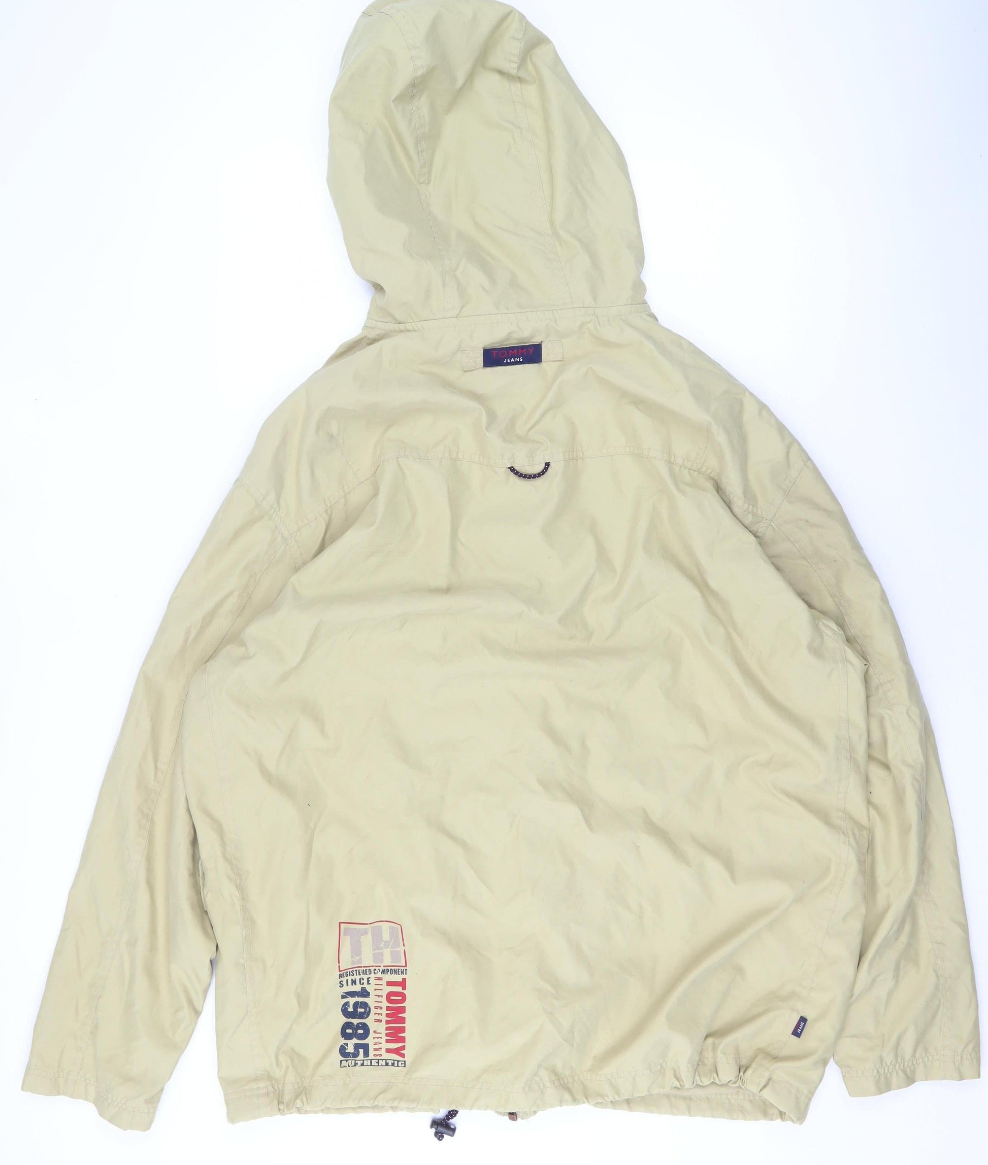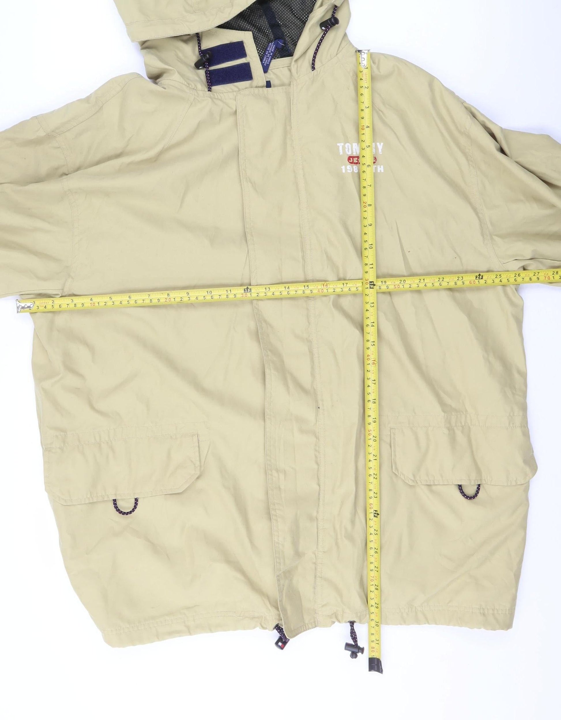Tommy Jeans Men's Beige L Windbreaker Hooded Jacket 90s Style