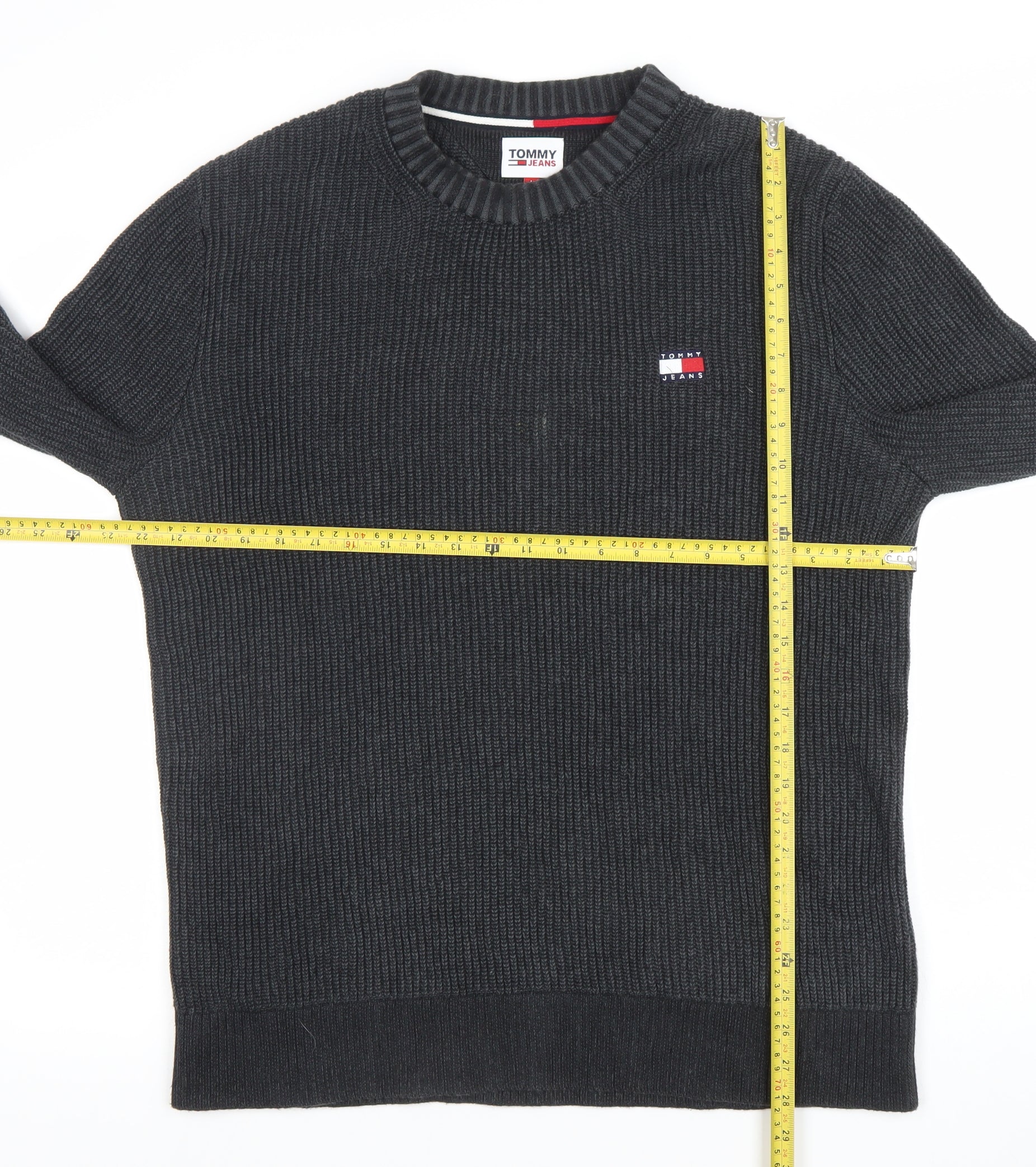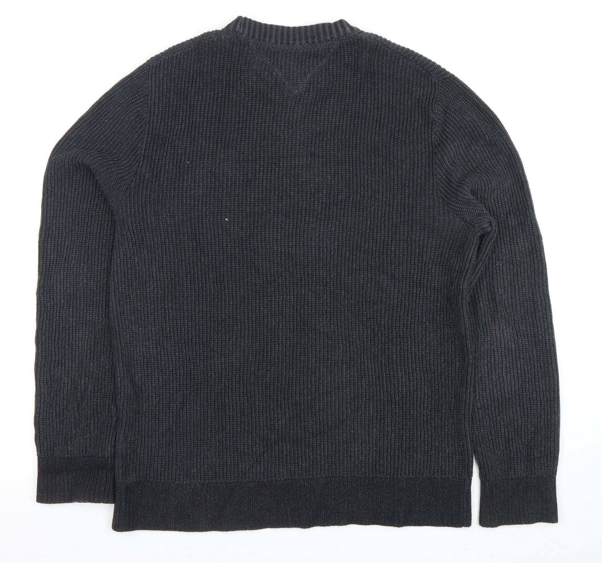 Tommy Jeans Mens Black Cotton Crew Neck Ribbed Pullover Jumper L