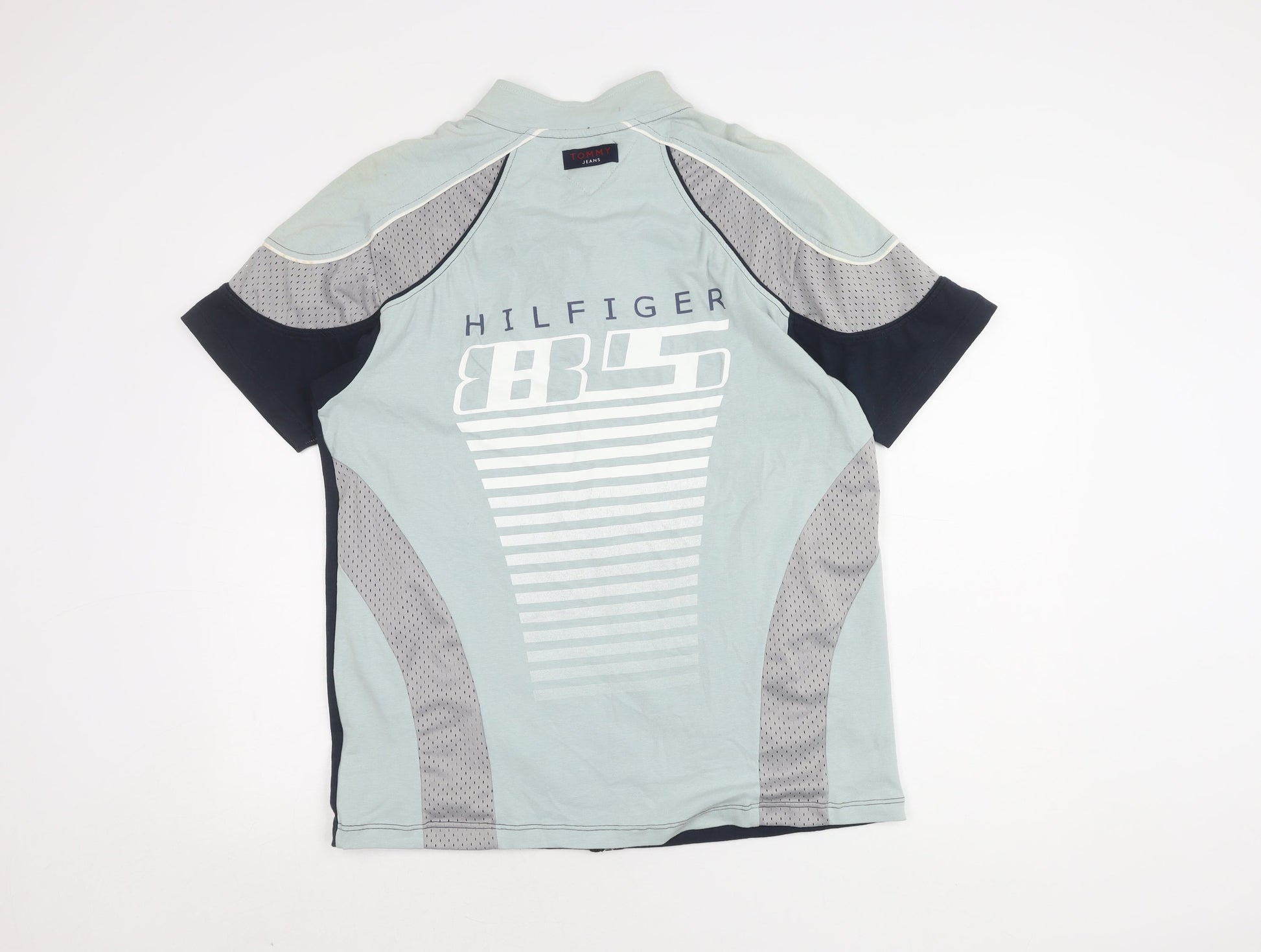 Tommy Jeans Men's Blue Collared T-Shirt L Vintage