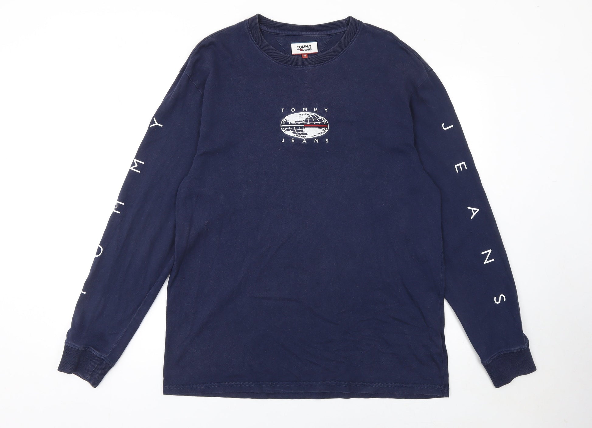 Tommy Jeans Men's Blue Long Sleeve Crew Neck Cotton T-Shirt Size M
