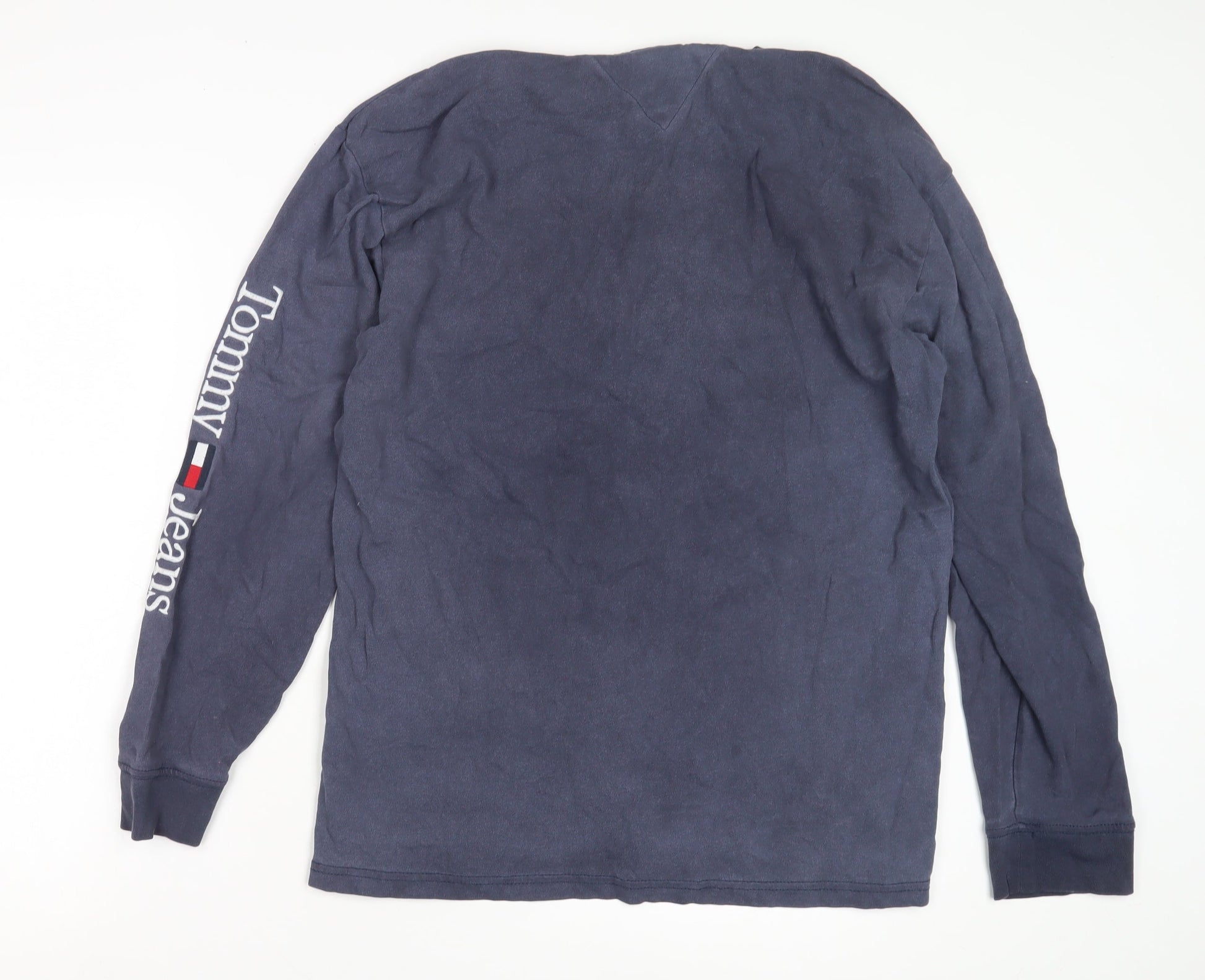 Tommy Jeans Men's Blue Long Sleeve T-Shirt Medium
