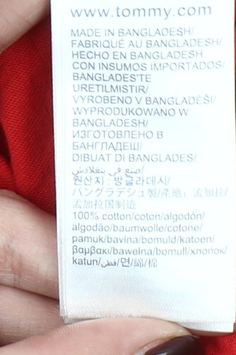 Tommy Jeans Men's Red Cotton Logo Crew Neck T-Shirt Size L