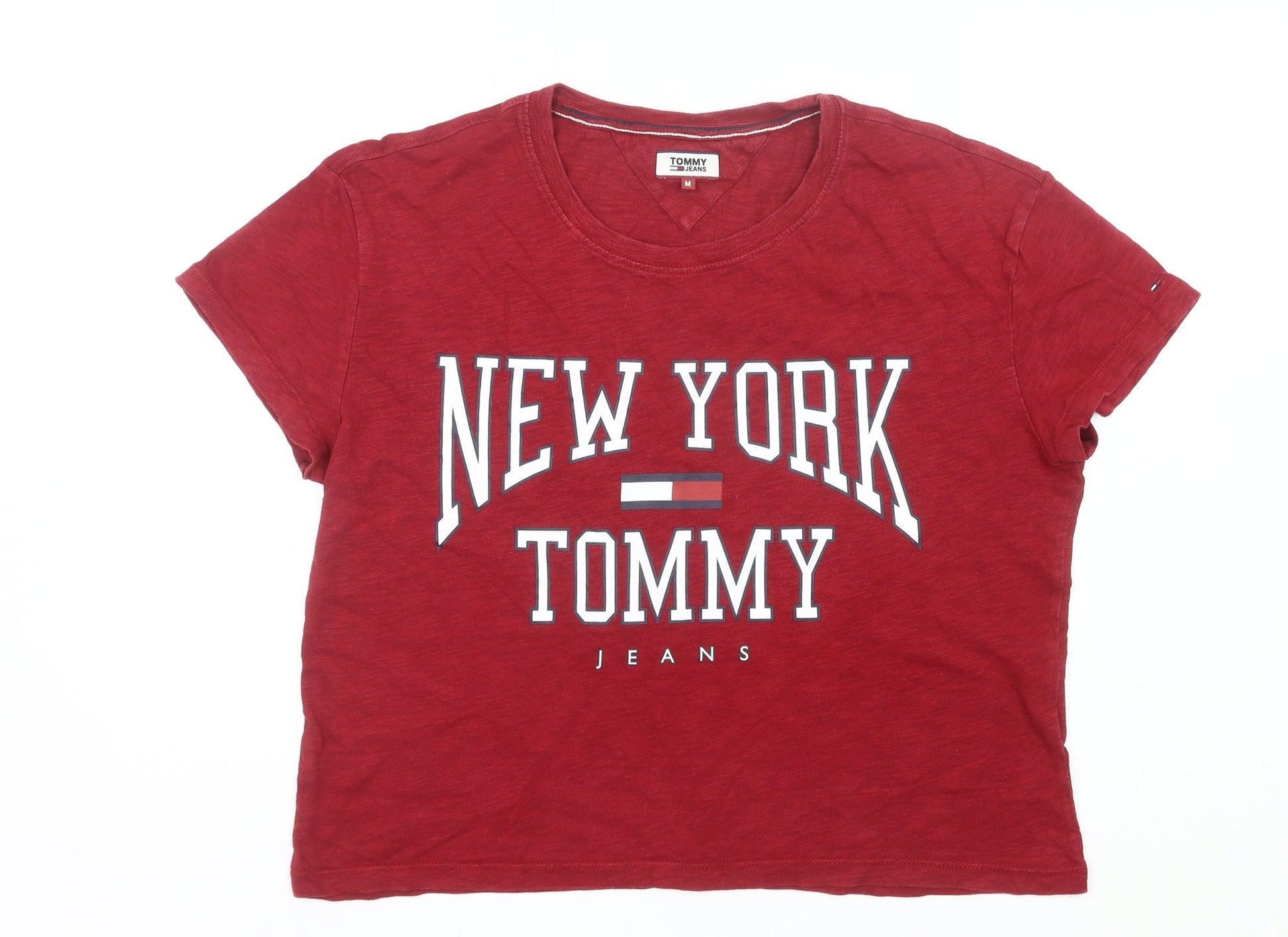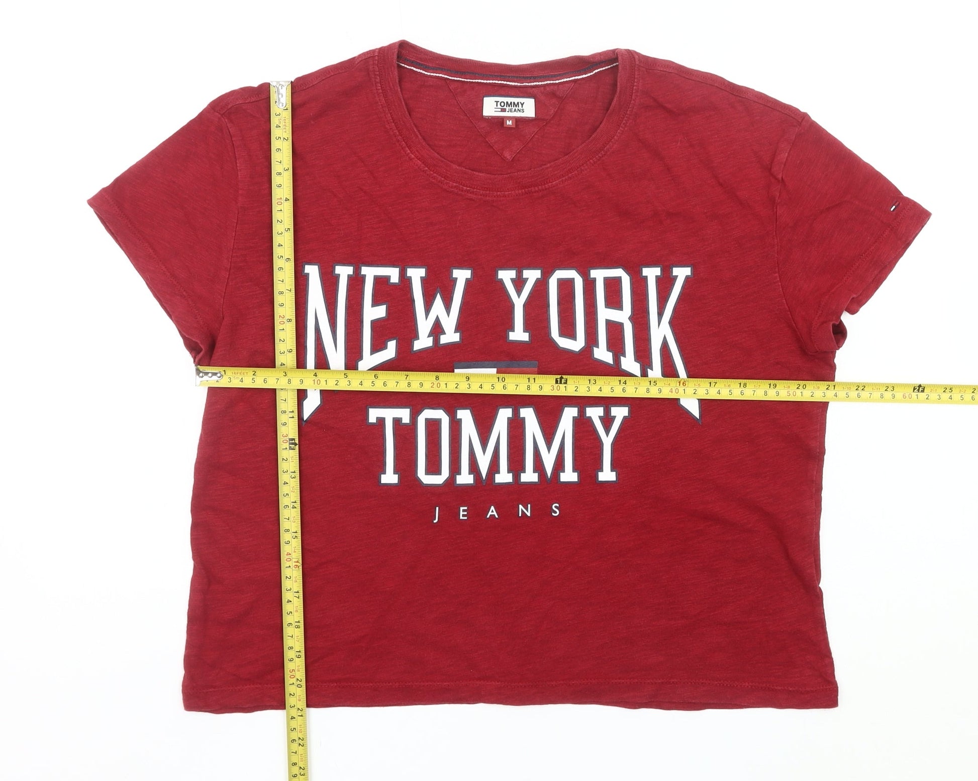 Tommy Jeans Women Red Cropped T-Shirt M Casual Logo Cotton
