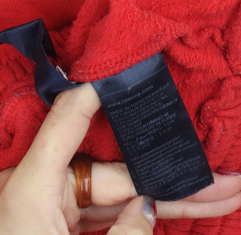 Tommy Jeans Women’s Red & Navy Hoodie L Logo Pullover Cotton Blend