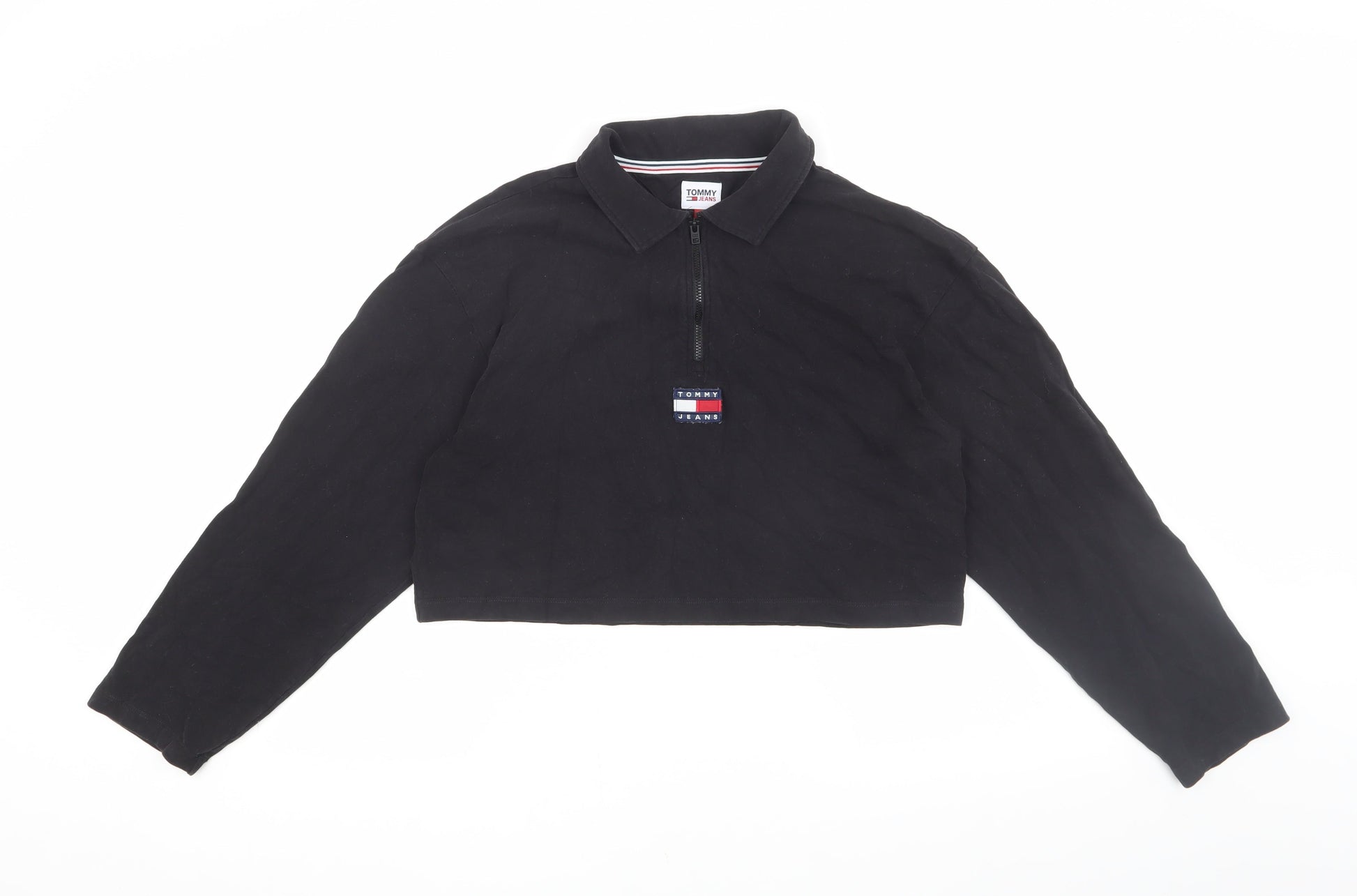 Tommy Jeans Women's Black Cropped Polo, M, Elegant Style
