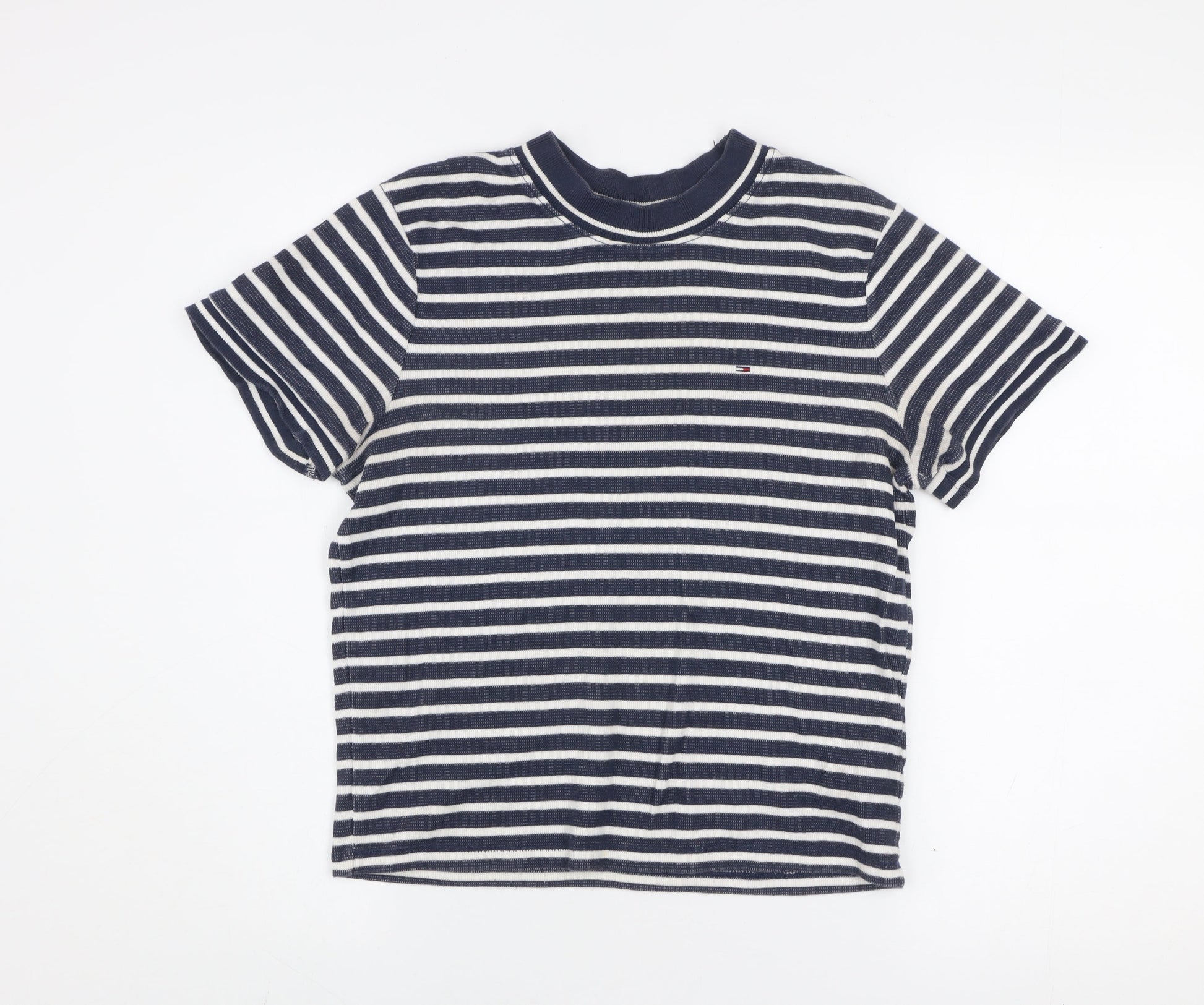 Tommy Jeans Women's Blue Striped Cotton Crew Neck T-Shirt XL