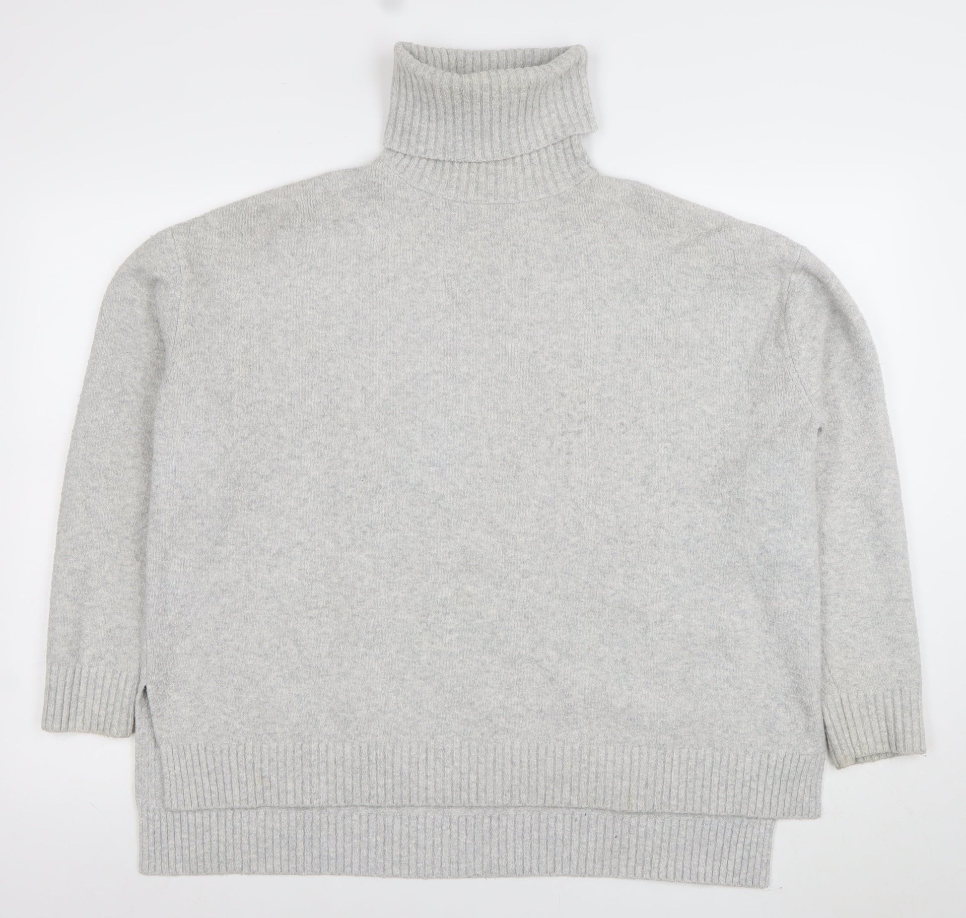 Tommy Jeans Womens Grey Roll Neck Wool Blend Jumper XS