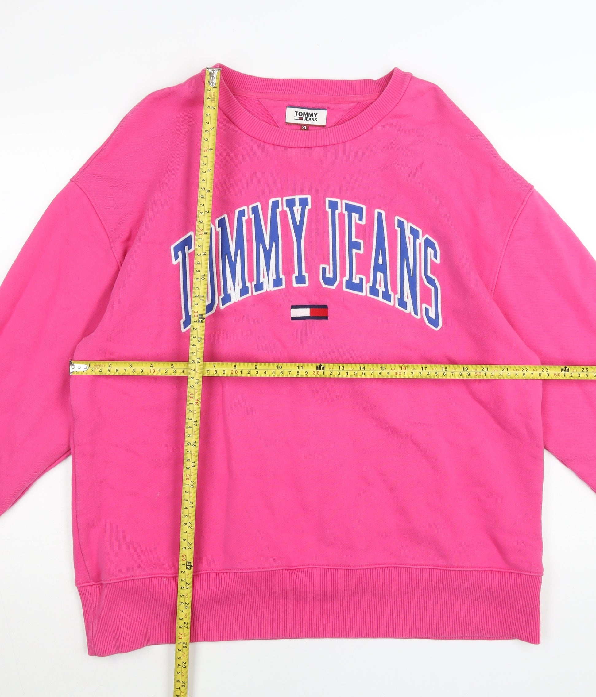 Tommy Jeans Womens Pink XL Pullover Sweatshirt Logo Graphic Casual