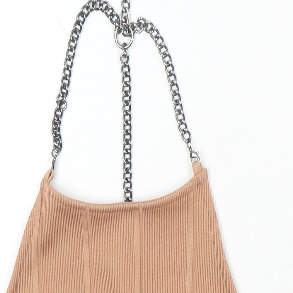 Top Shop Womens Brown Polyester Cropped Blouse Size 5XL Square Neck - Chain Detail
