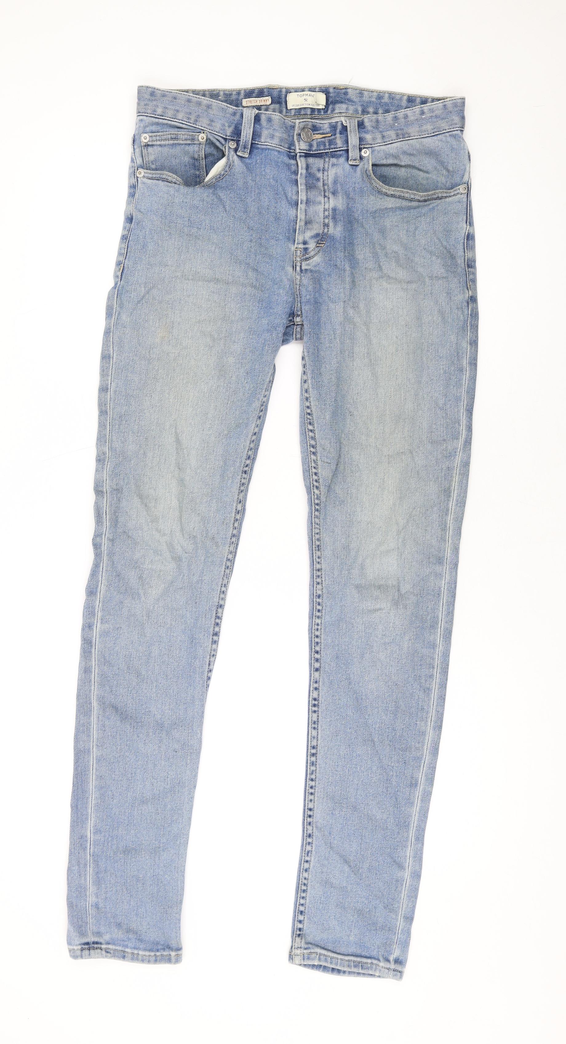 Topman Mens Blue Cotton Skinny Jeans Size 28 in L30 in Regular Zip