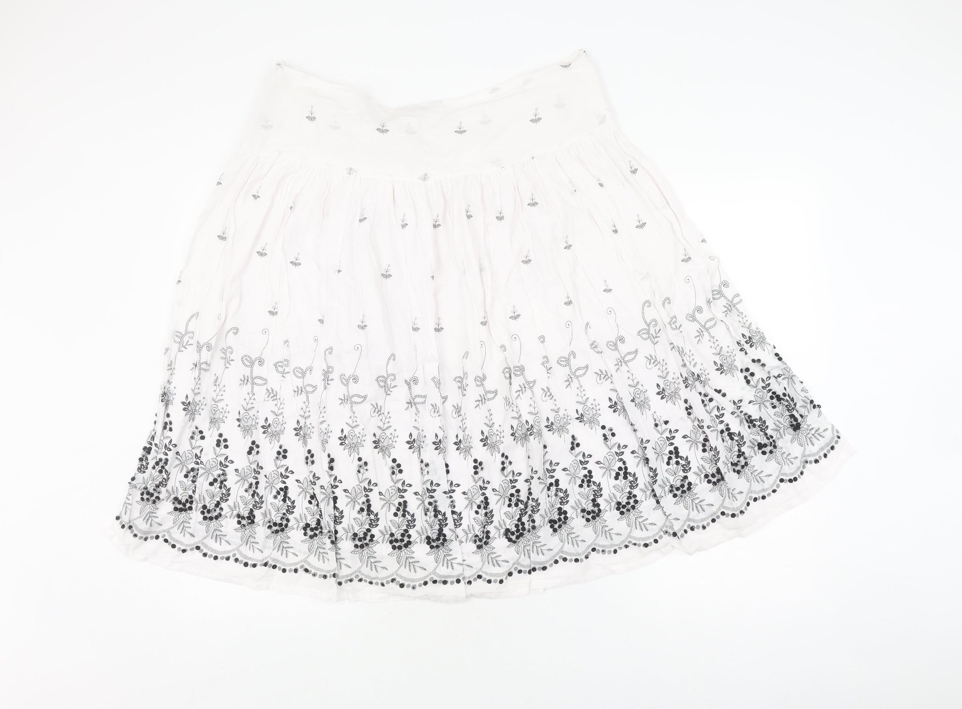 Topshop Women’s White Peasant Skirt Size 14 Embroidered