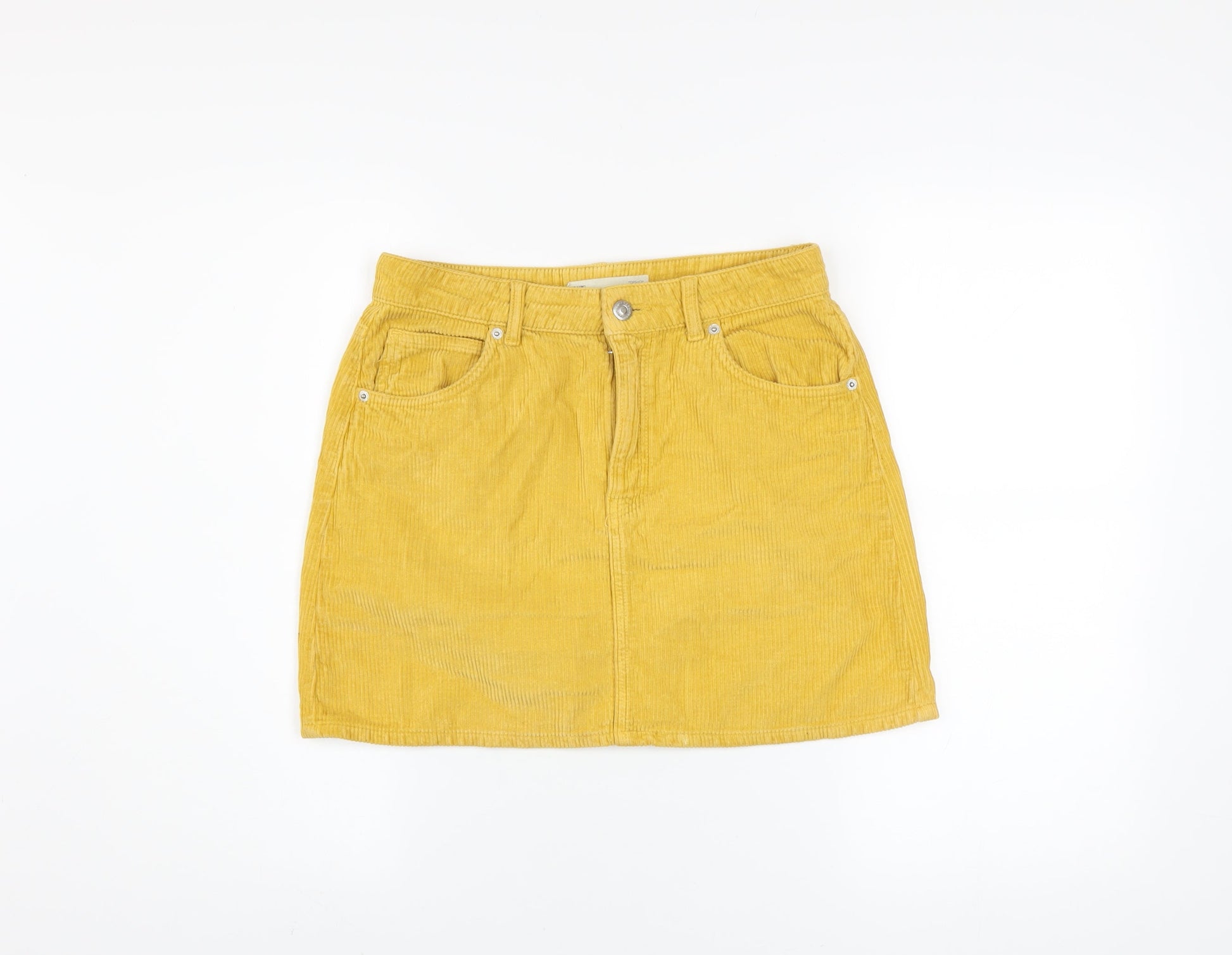Topshop Women Yellow Corduroy Mini Skirt Size 10 Retro Style