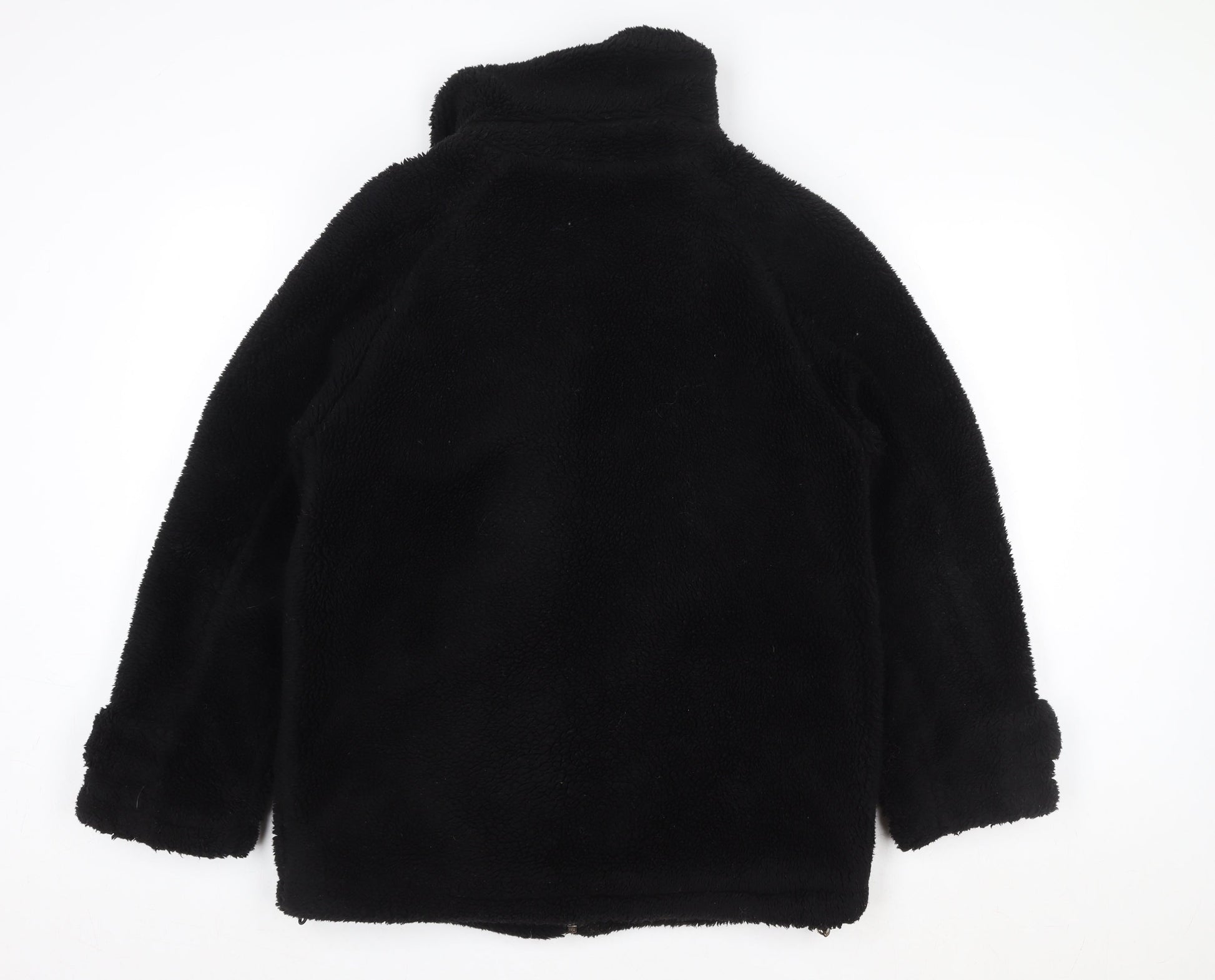 Topshop Women's Black Fleece Zip Coat Size S Classic Mid-Length