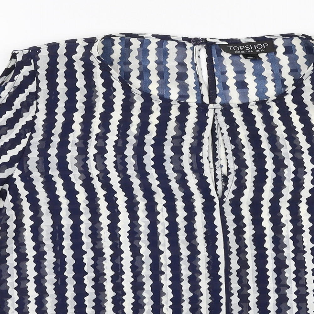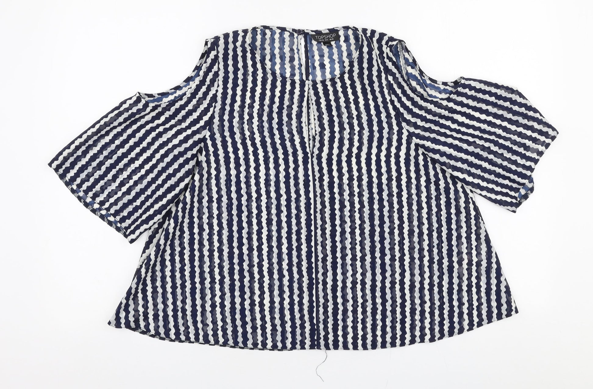 Topshop Womens Blue Striped Polyester Basic Blouse Size 10 Round Neck - Cold shoulder