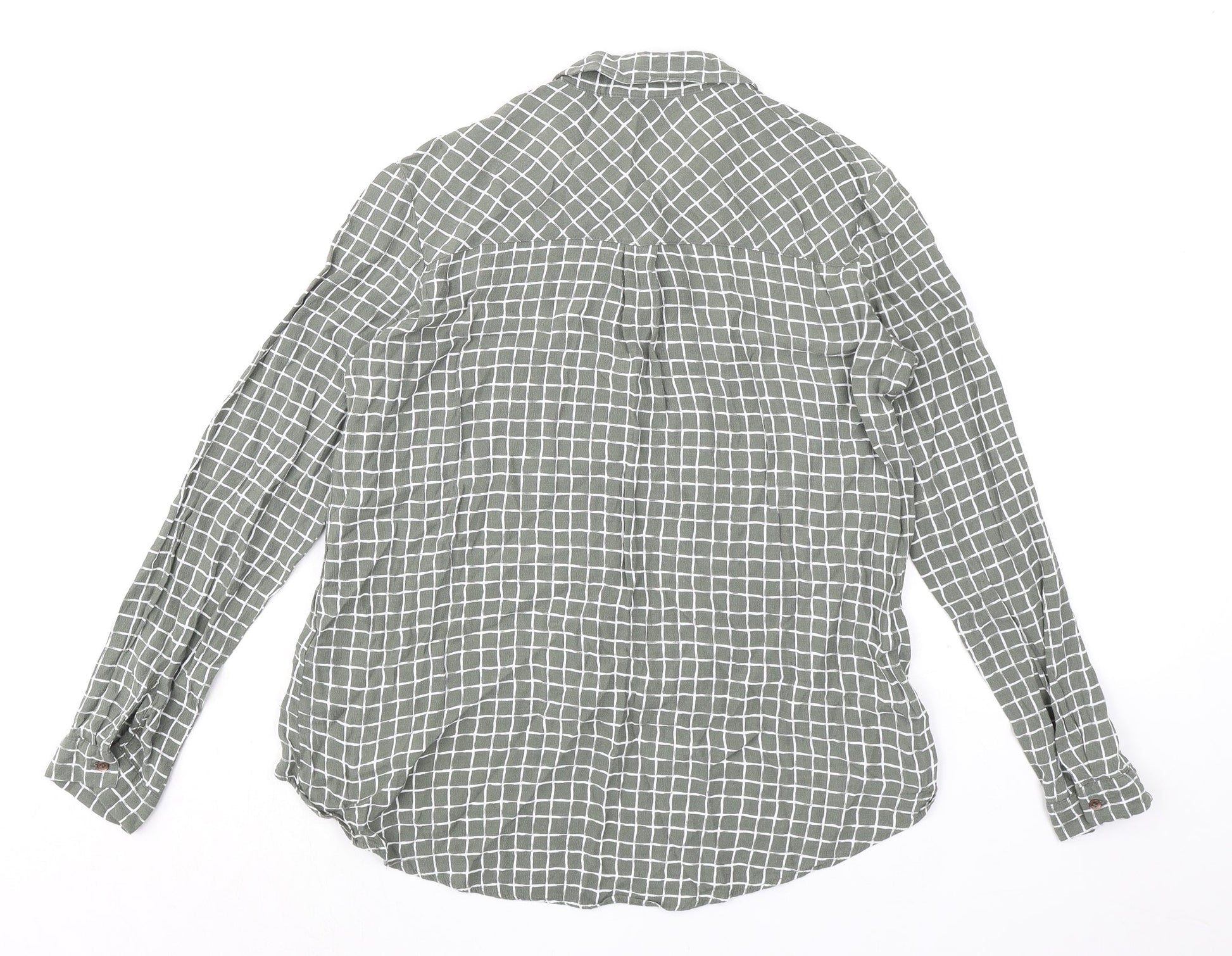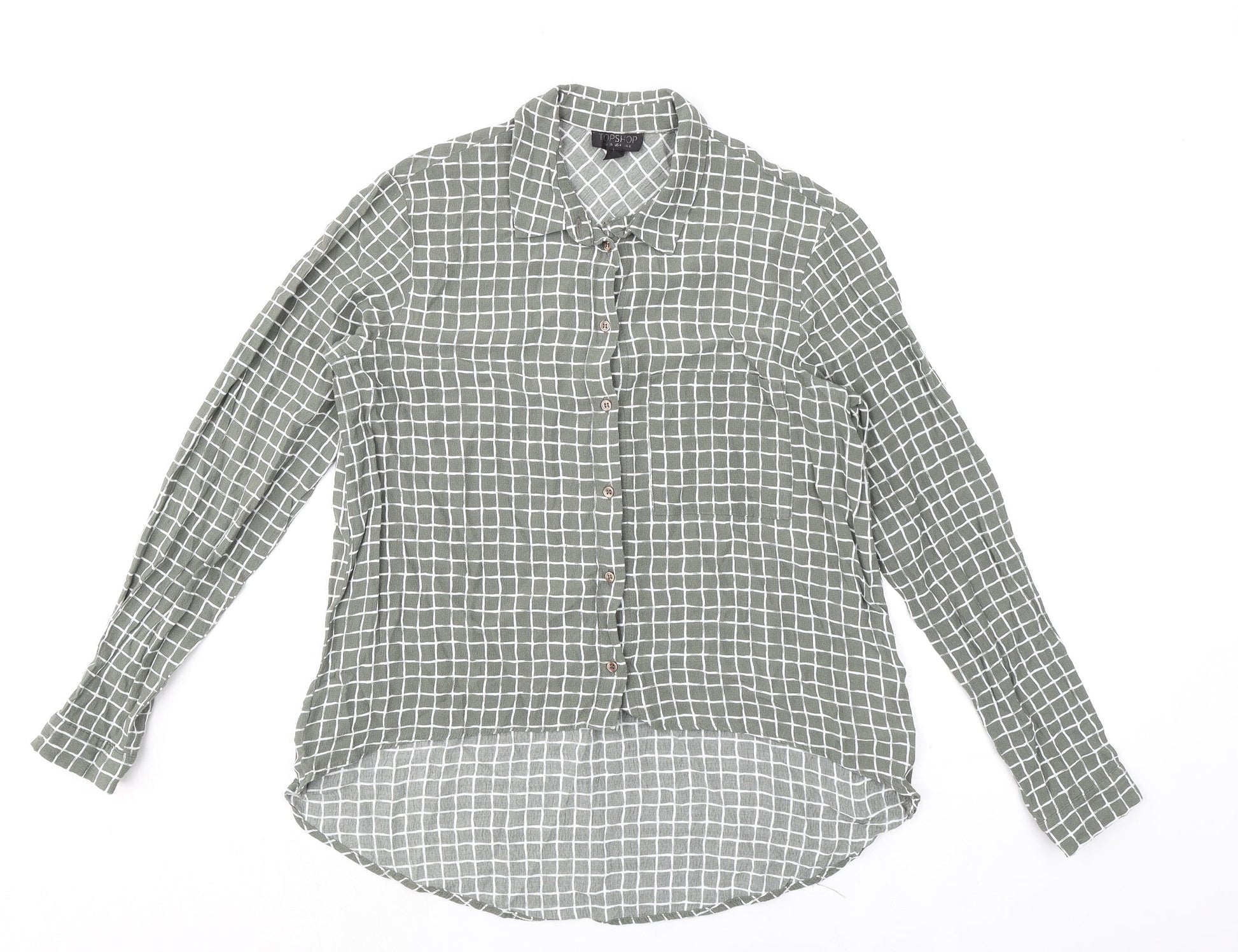 Topshop Womens Green Check Viscose Basic Button-Up Size 8 Collared
