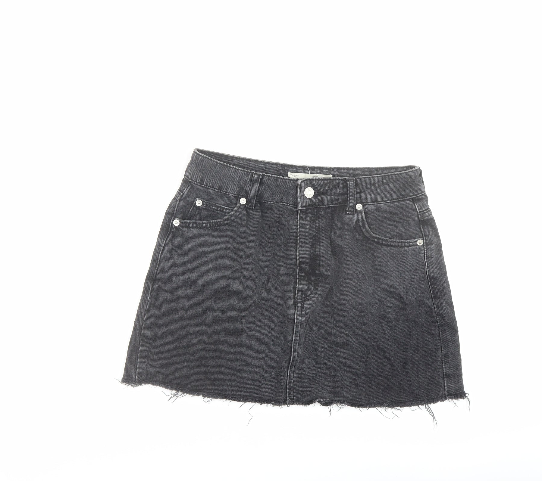 Topshop Womens Grey Cotton Mini Skirt Size 8 Button