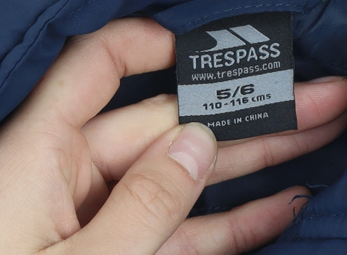 Trespass Girls Blue Padded Bodywarmer 5-6 Years Polyester Zip Waistcoat