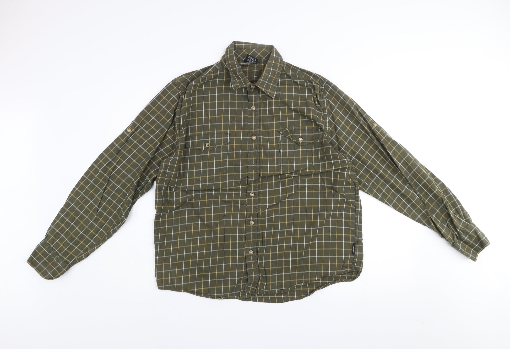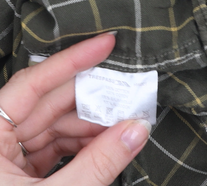 Trespass Men’s Green Check Cotton Long Sleeve Button-Up Shirt M