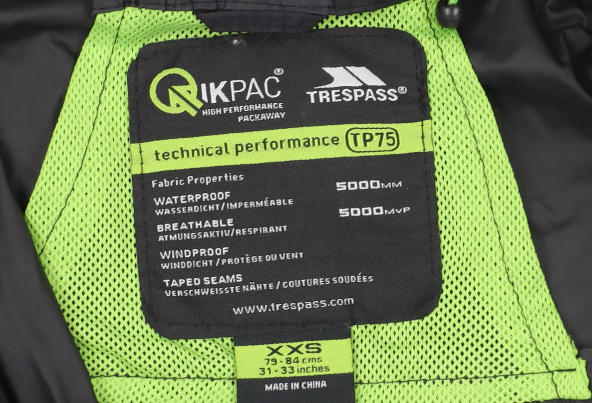 Trespass Men's Black Windbreaker Jacket 2XS Casual Outdoor