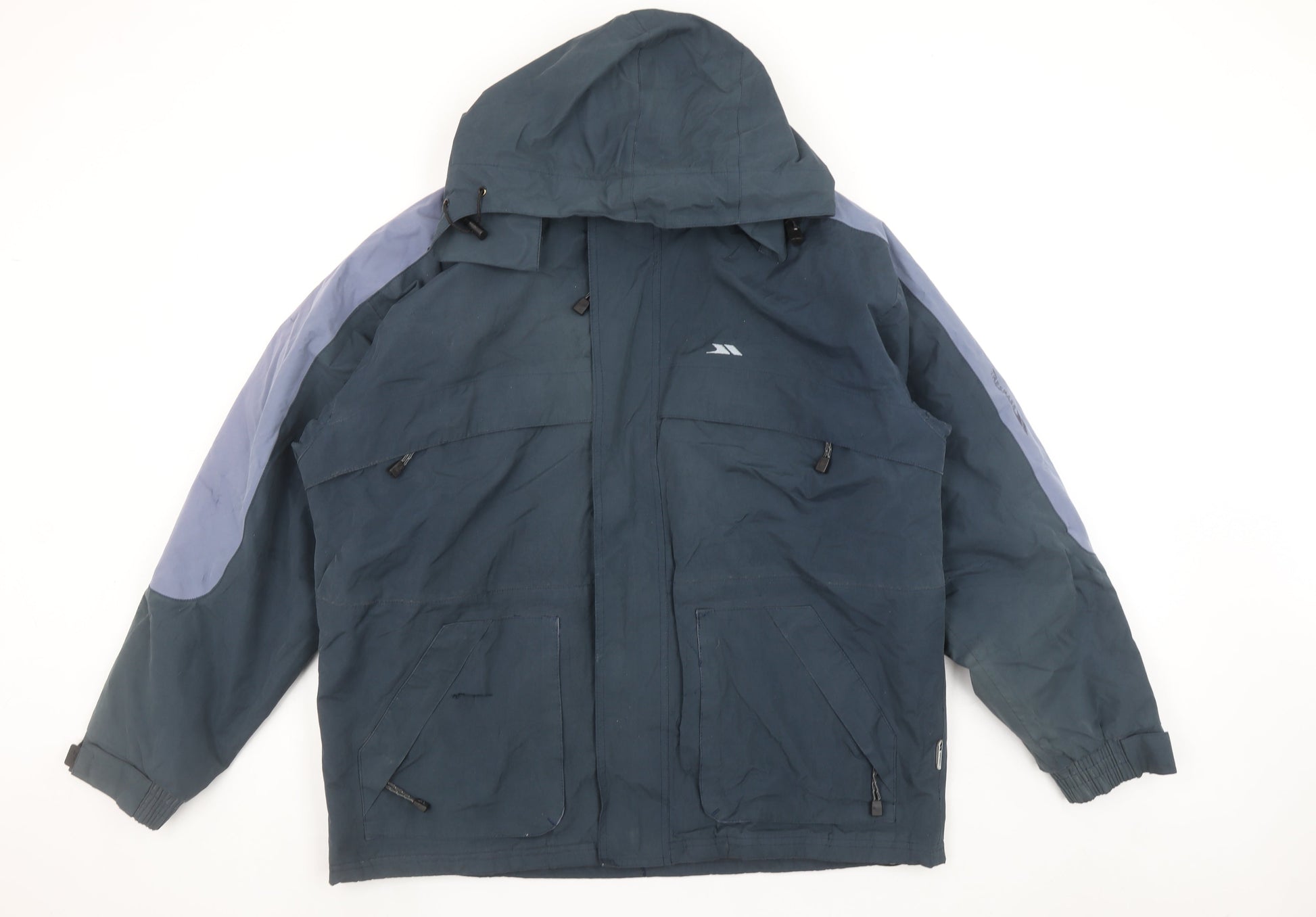 Trespass Men's Blue Waterproof Hooded Mid-Length Jacket M