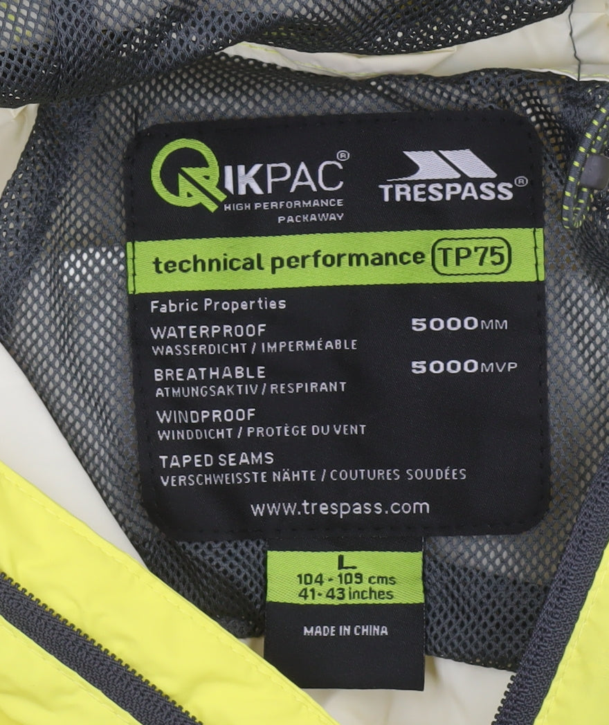 Trespass Mens Yellow Waterproof Hooded Rain Jacket Size L