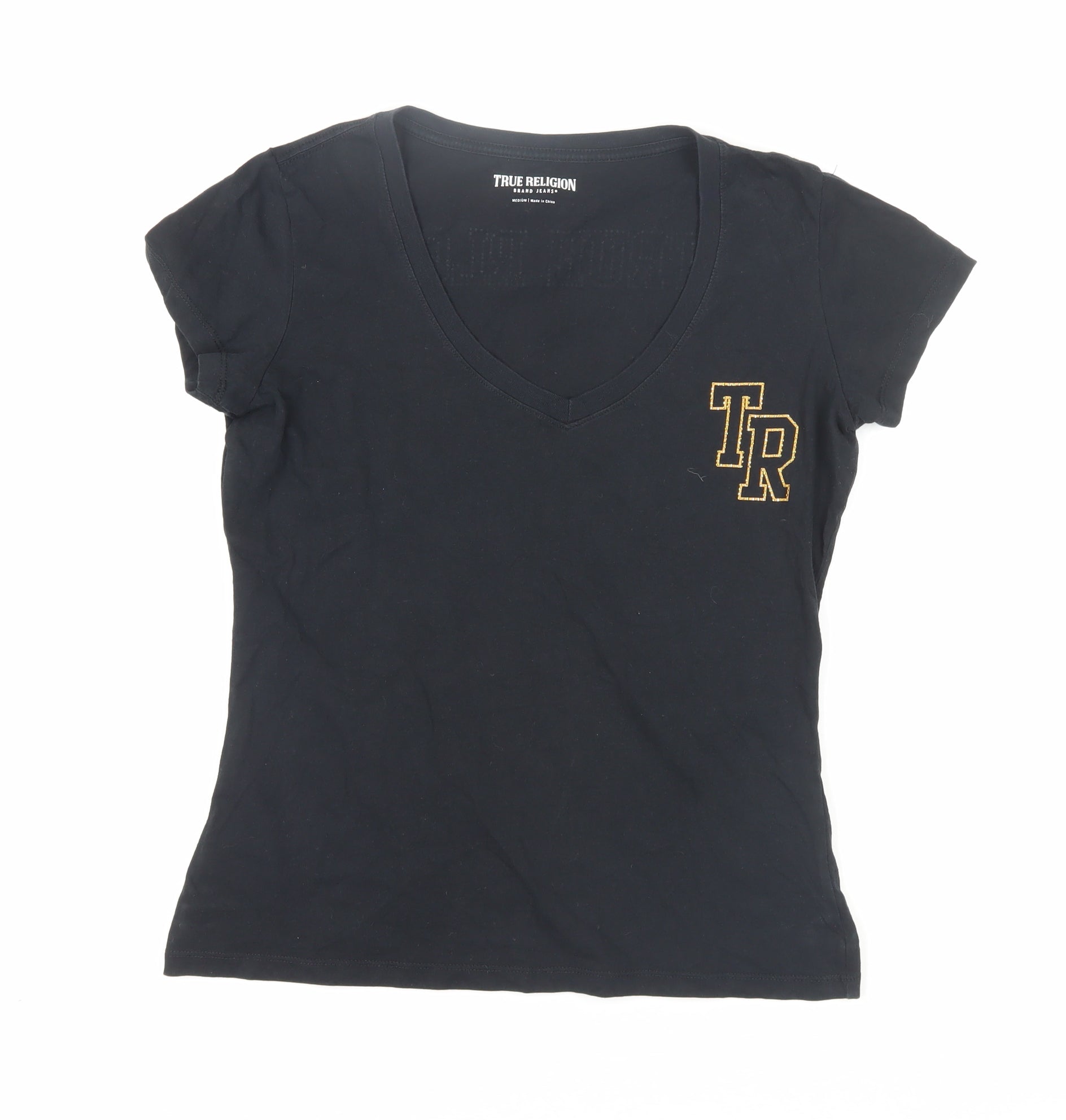 True Religion Women's Black T-Shirt M V-Neck Casual