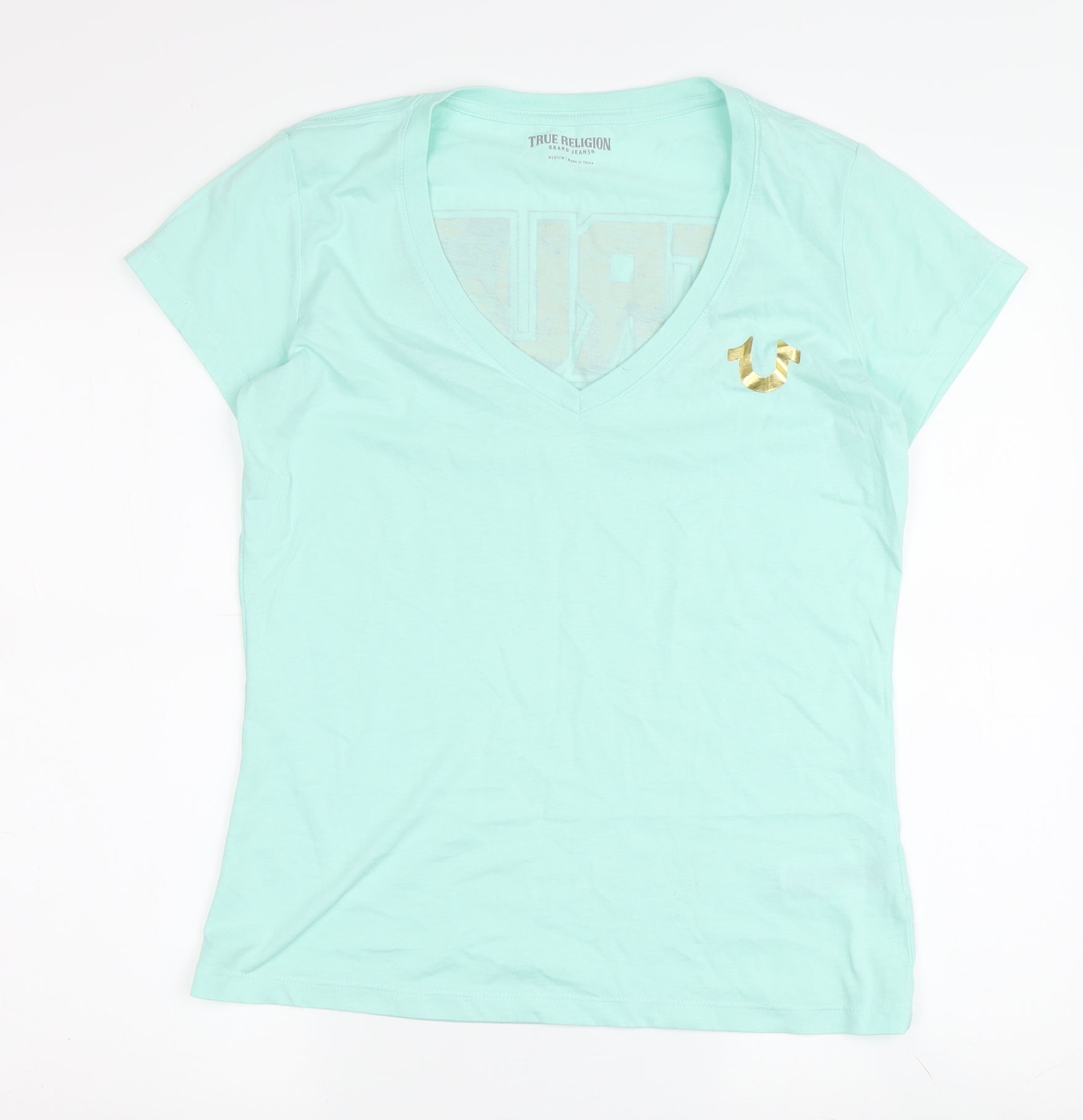 True Religion Women's Green V-Neck T-Shirt Medium