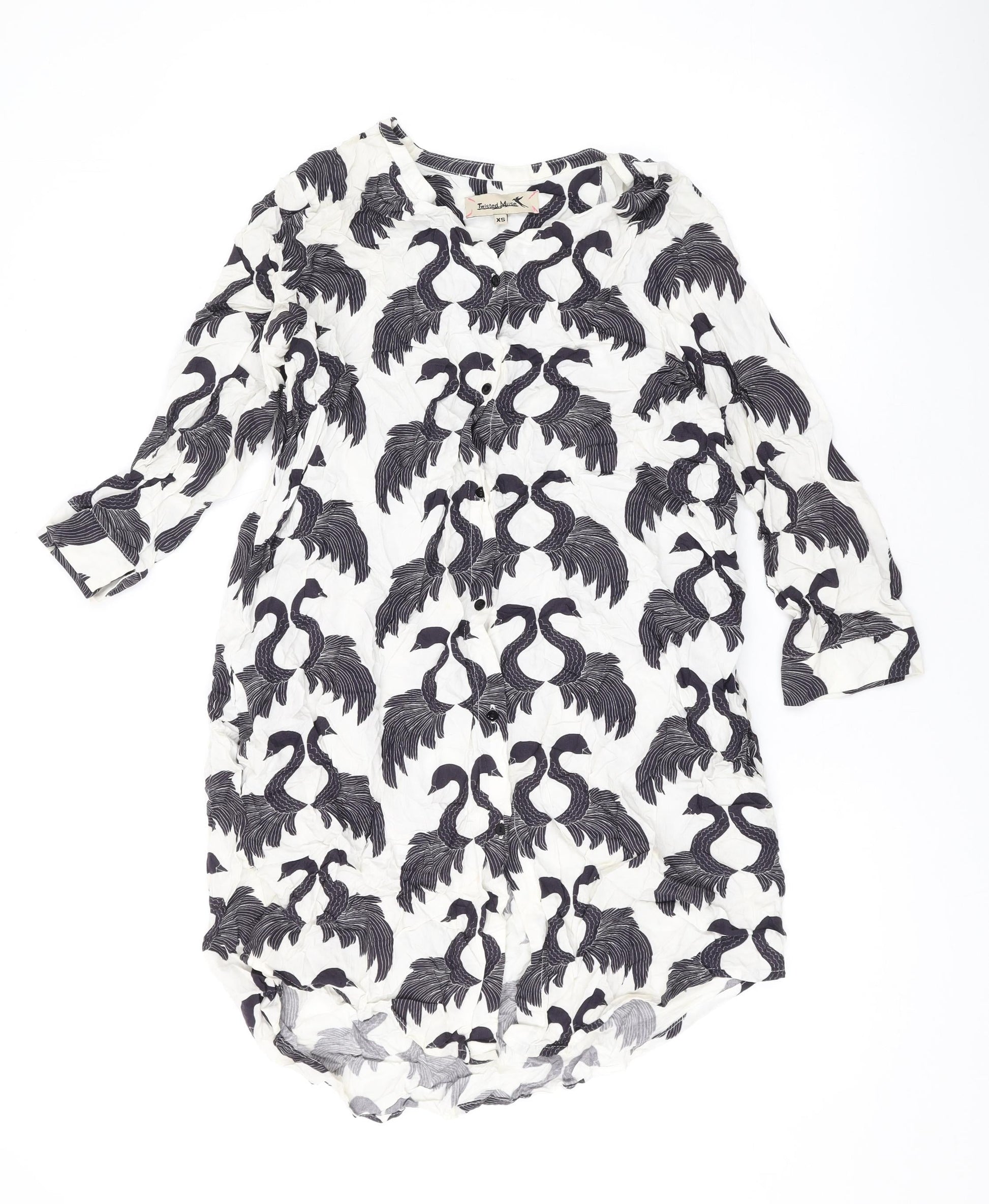 Twisted Muse Womens White Geometric Viscose Basic Button-Up Size XS V-Neck