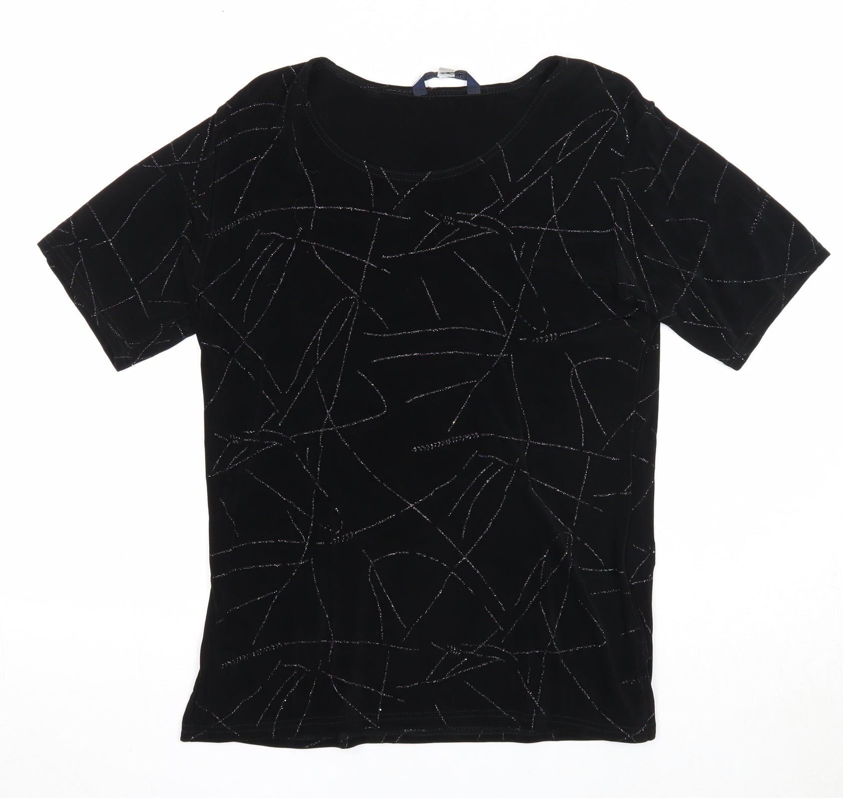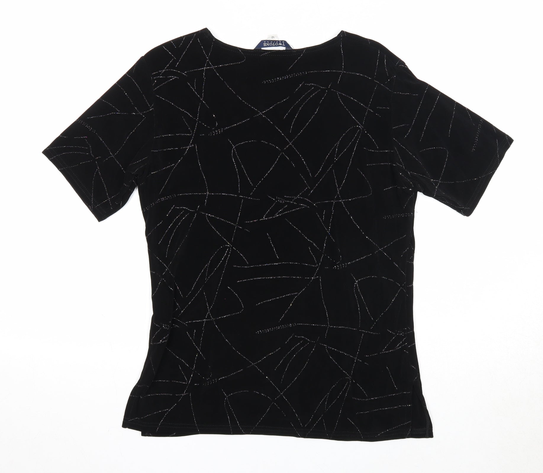 Twotone Designs Womens Black Geometric Acetate Basic T-Shirt Size 12 Round Neck