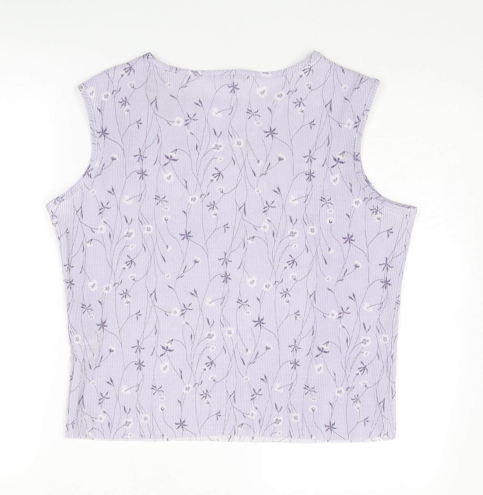 TWOTONE Womens Purple Geometric Polyester Basic Tank Size 16 Round Neck