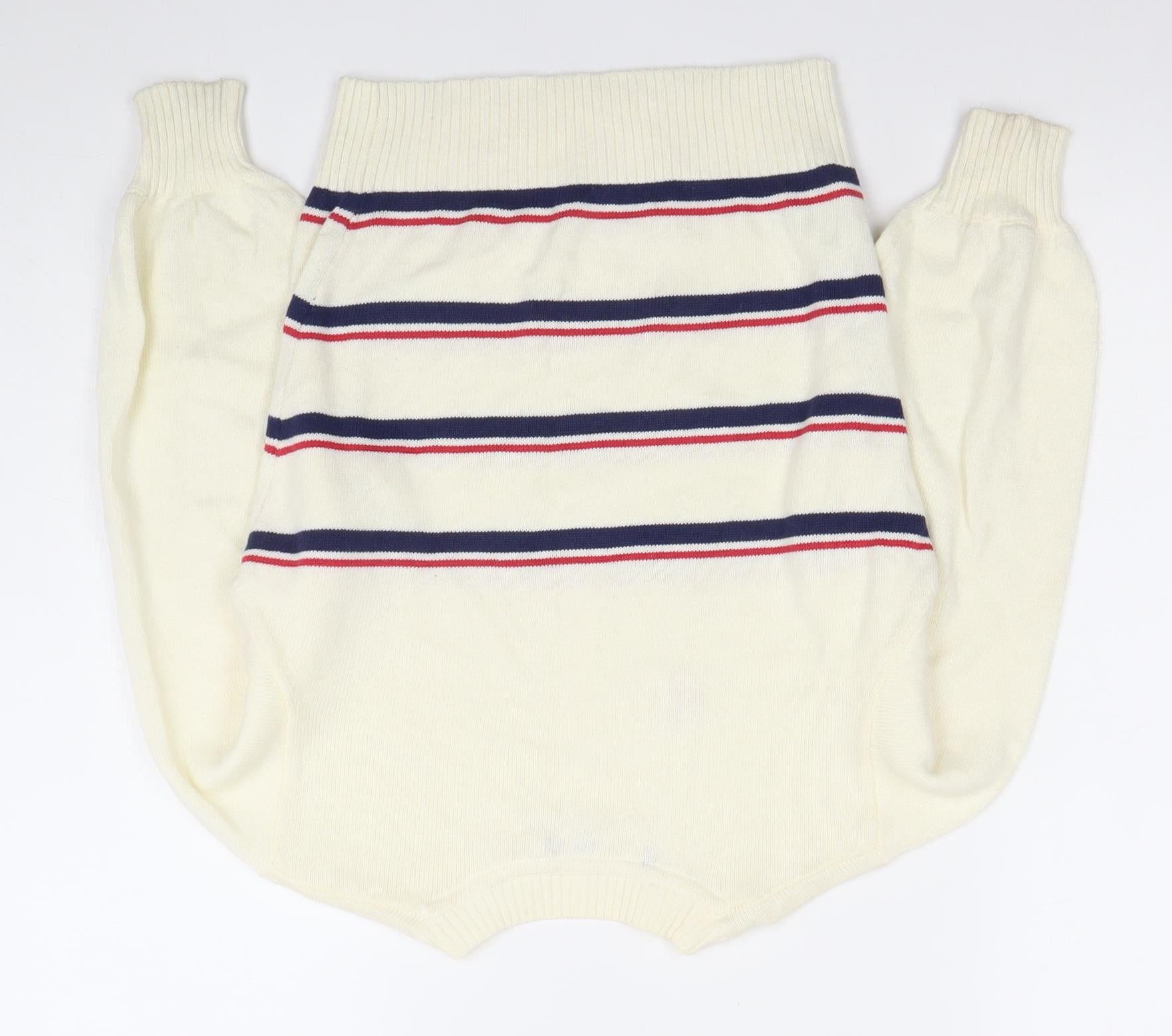 U.S. Polo Assn. Girls Ivory Striped Pullover Jumper 6-8 Years Cotton Crew Neck