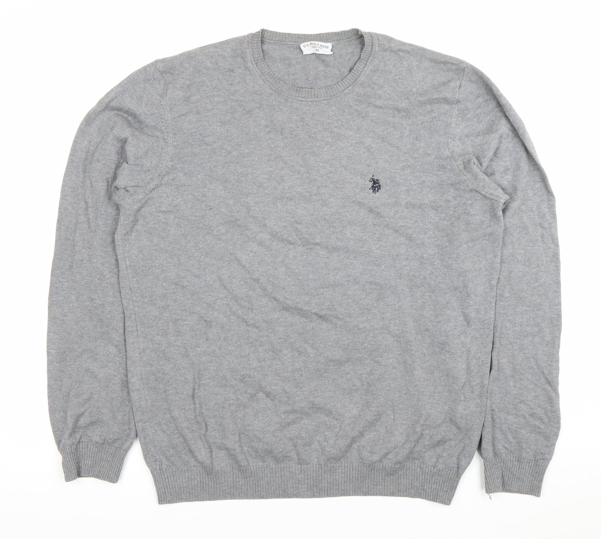 U.S. Polo Assn. Men’s Grey Cotton Crew Neck Pullover Jumper M