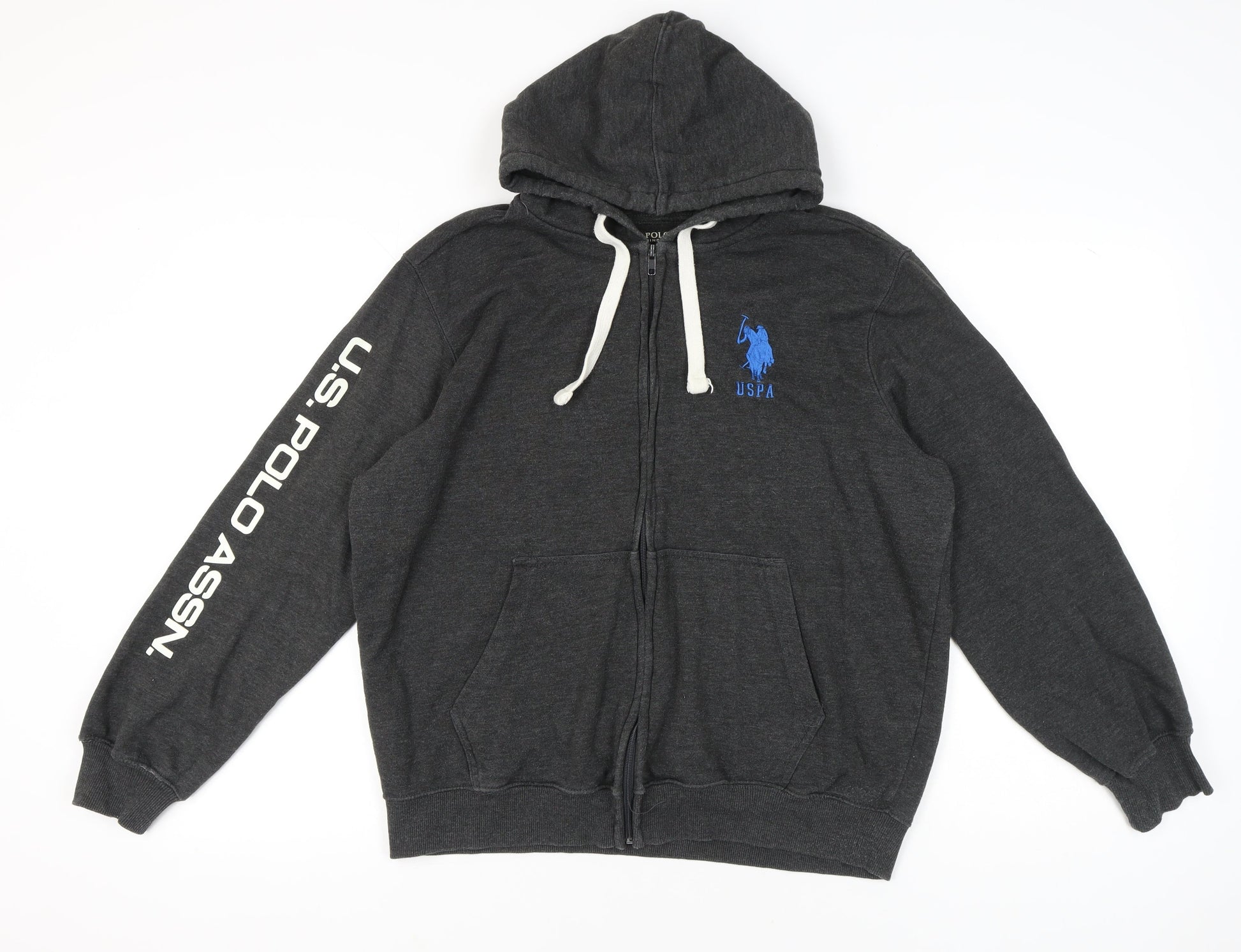 U.S. Polo Assn. Men’s Grey Full Zip Hoodie L Sports Logo