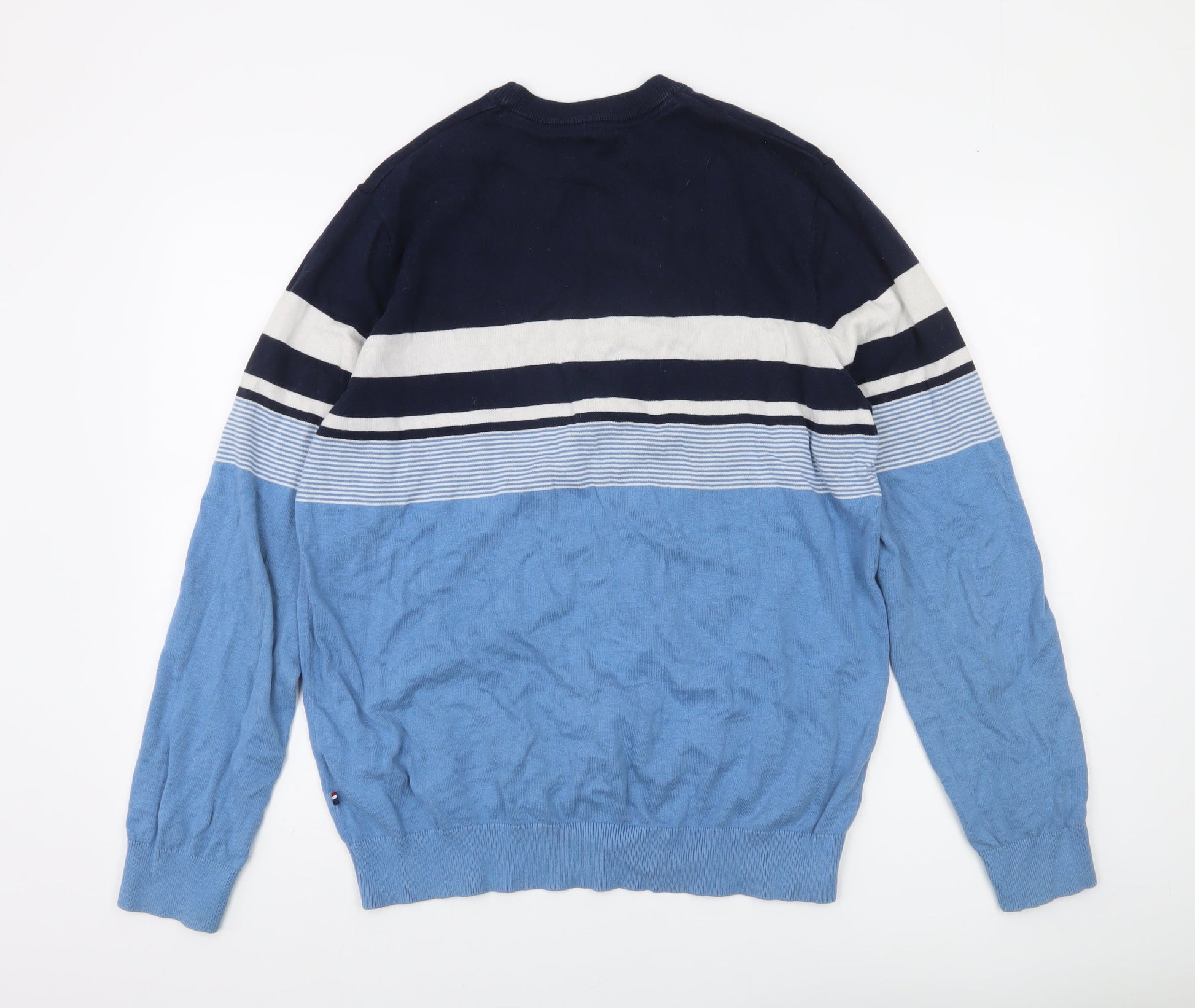 U.S. Polo Assn. Men's Blue Striped Cotton Crew Neck Jumper Size L