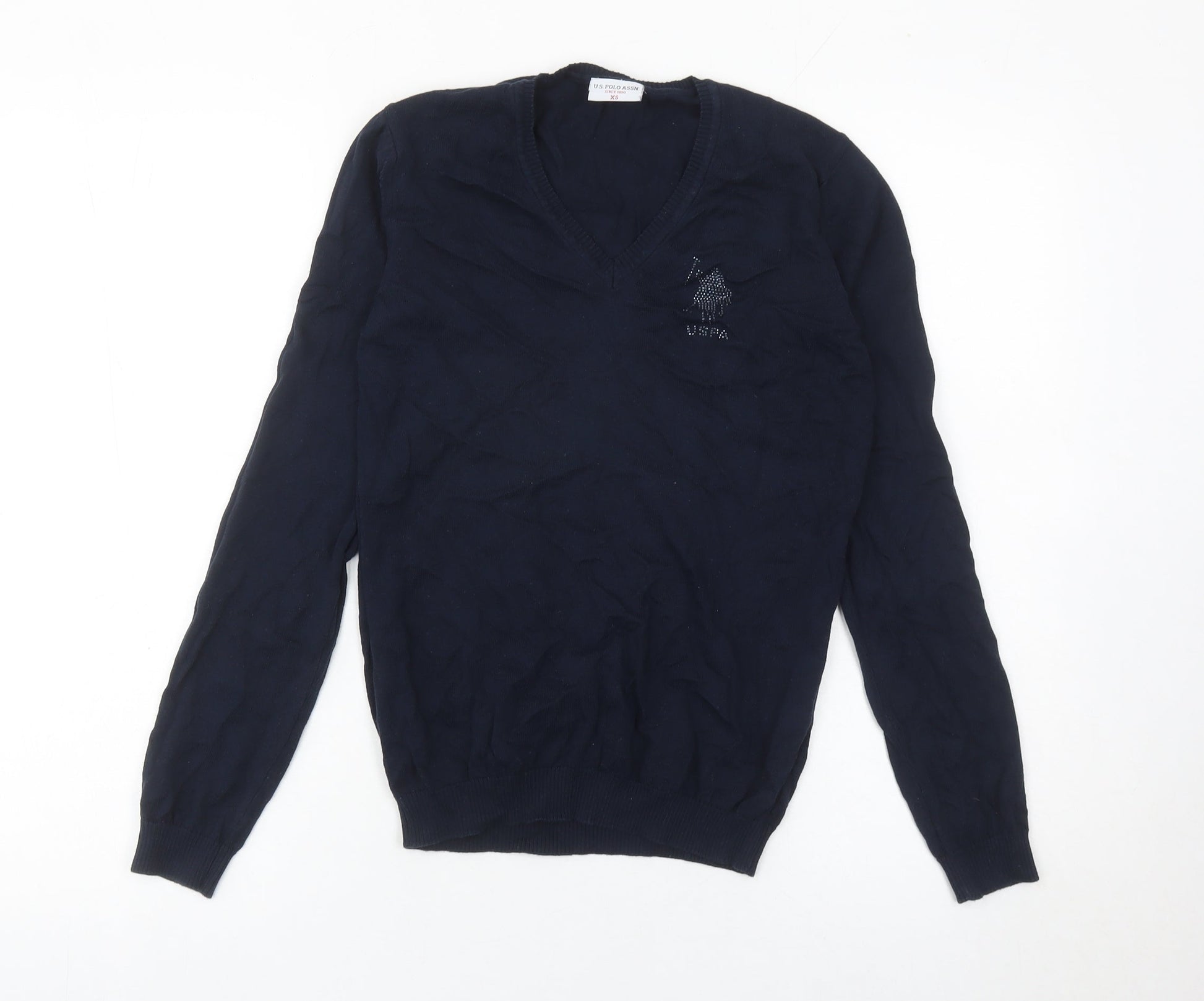 U.S. Polo Assn. Women's Blue XS V-Neck Cotton Jumper