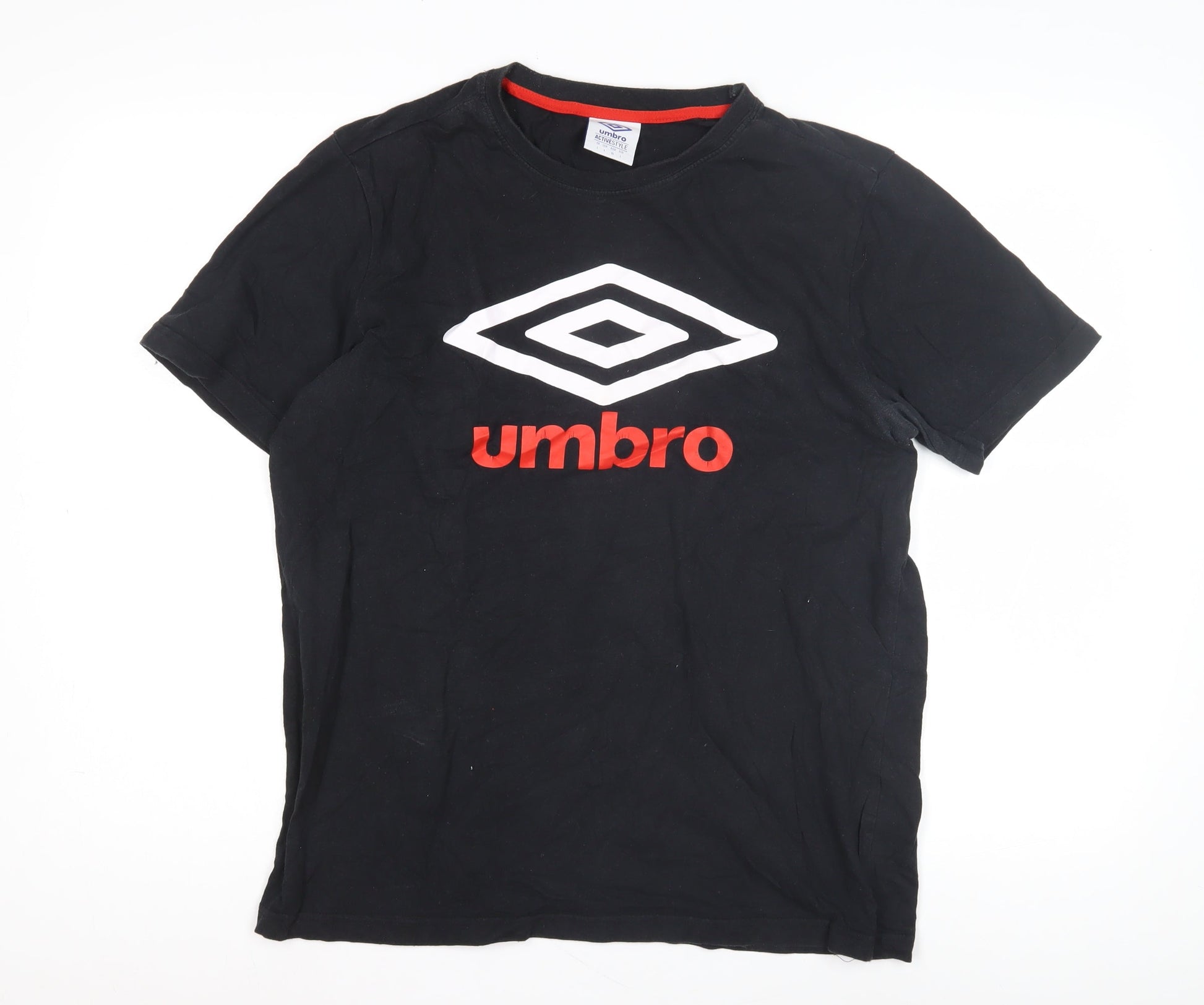 Umbro Men's Black Cotton T-Shirt Size L Logo Accent