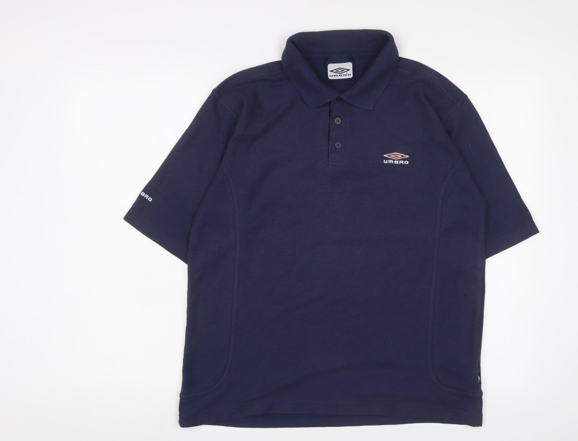 Umbro Mens Blue Cotton Polo Size L Collared Button - Logo, Embroidered