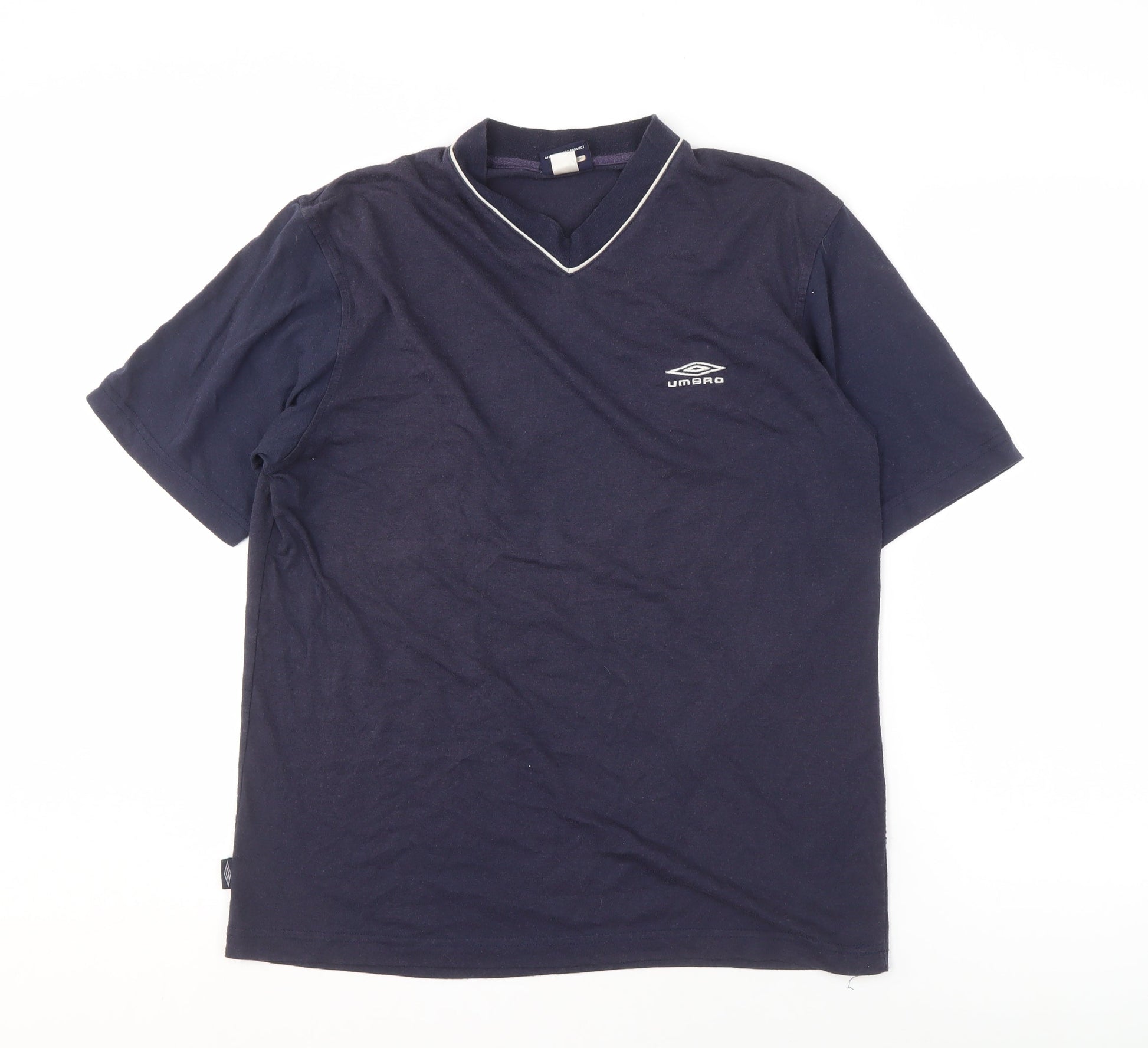 Umbro Men's Blue V-Neck T-Shirt, M, Short Sleeve, Logo
