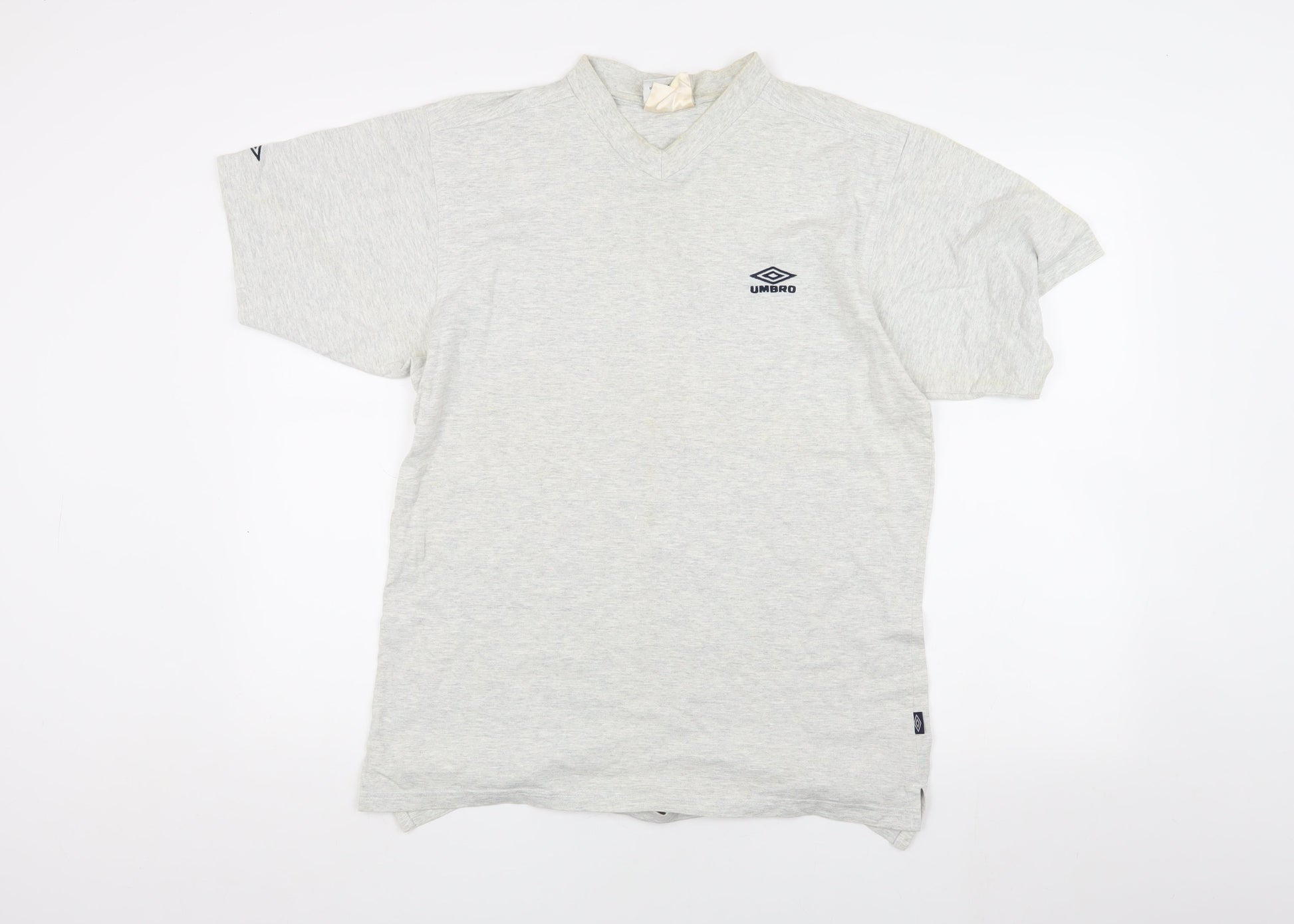 Umbro Men's Grey V-Neck T-Shirt, Size M, Casual Comfort