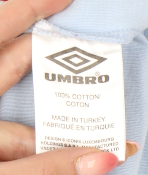 Umbro Women Blue S Ringer Embroidered Logo Cotton T-Shirt