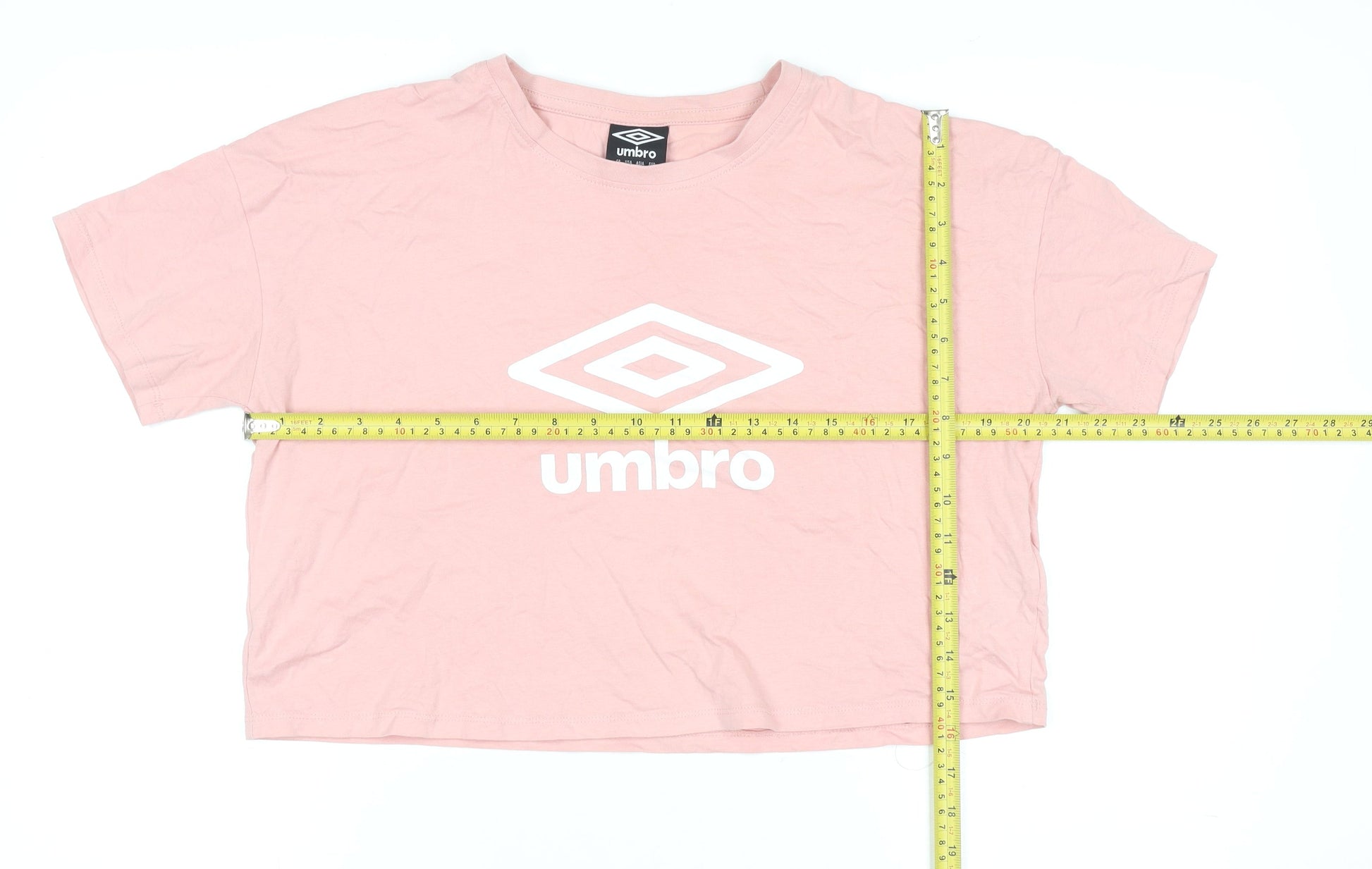 Umbro Women Pink Cropped T-Shirt Medium Cotton Sportswear