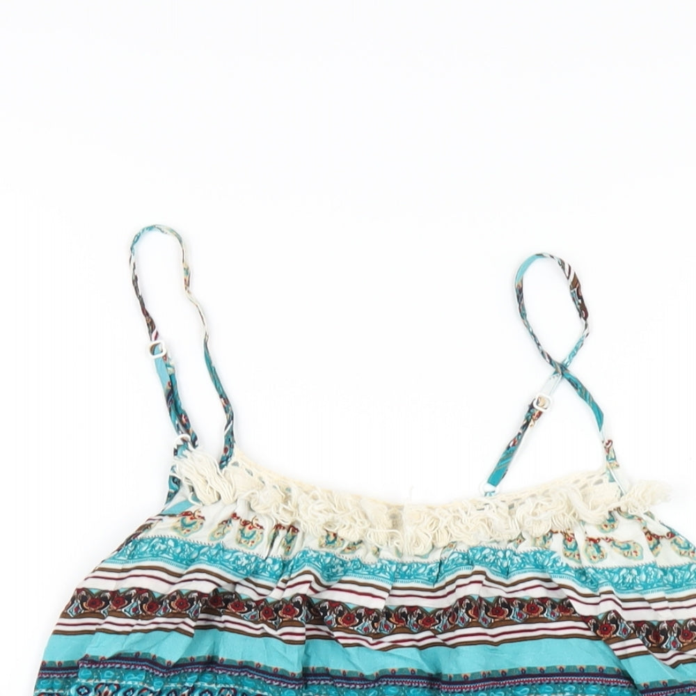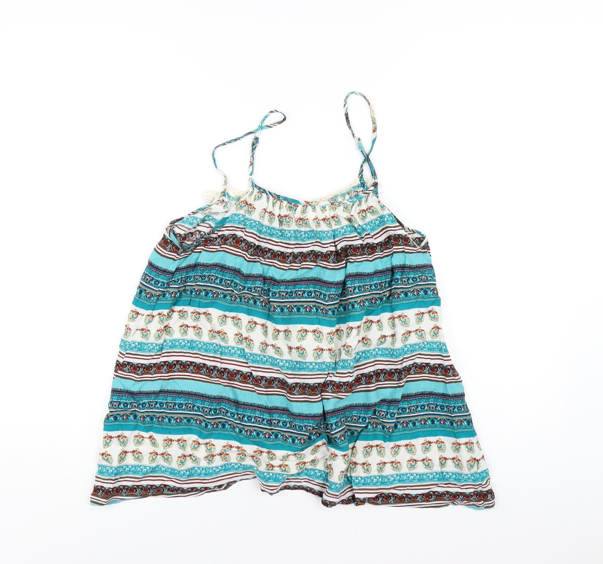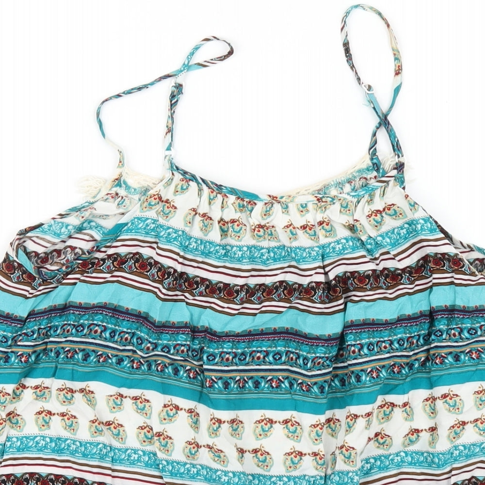 UMGEE Womens Multicoloured Geometric Cotton Camisole T-Shirt Size S Round Neck