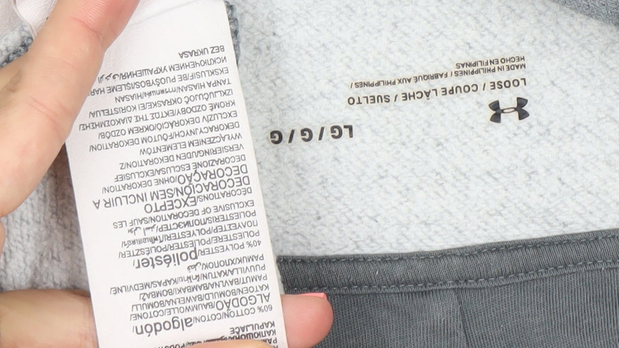 Under Armour Men's Grey Large Pullover Hoodie with Logo and Pockets