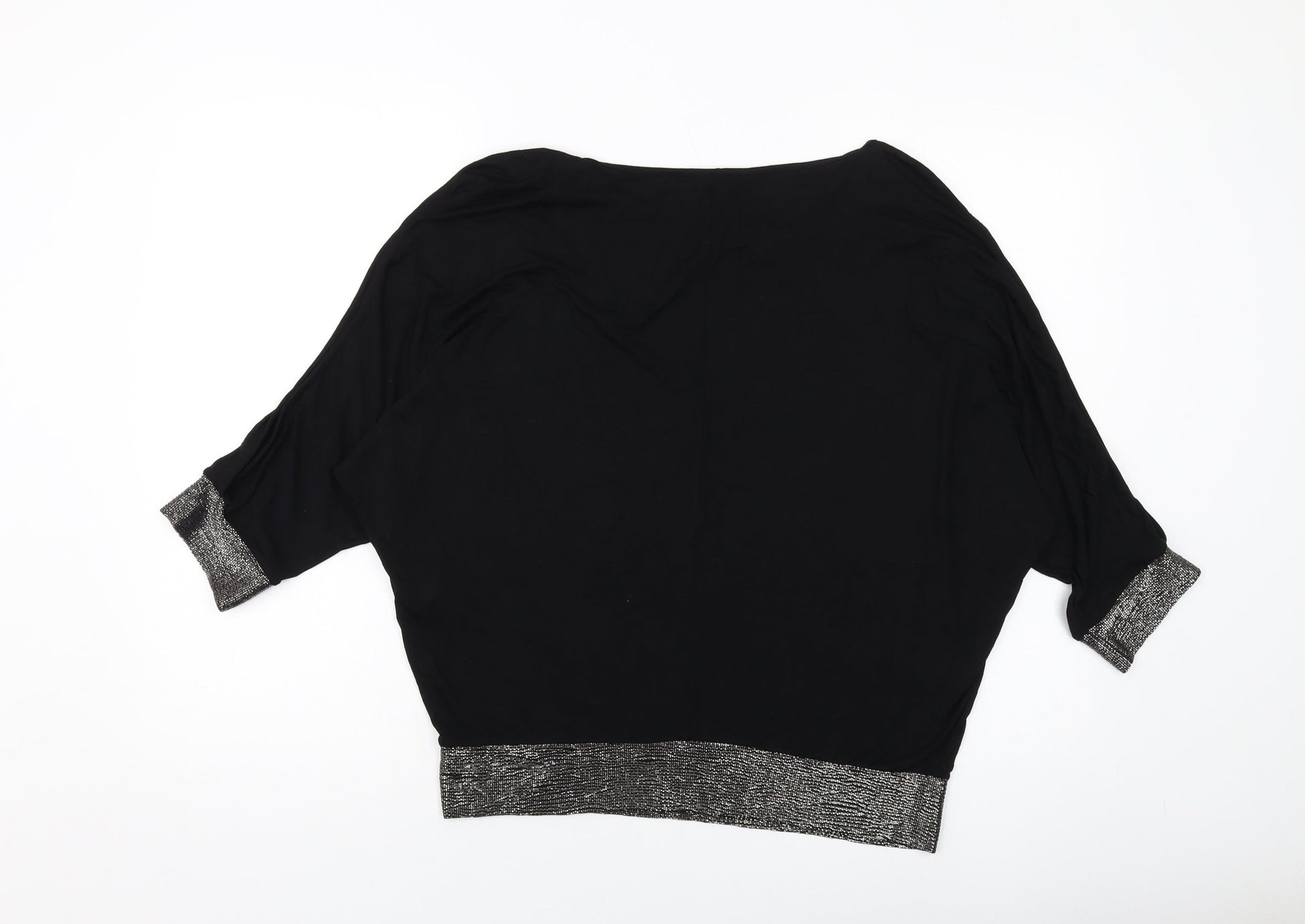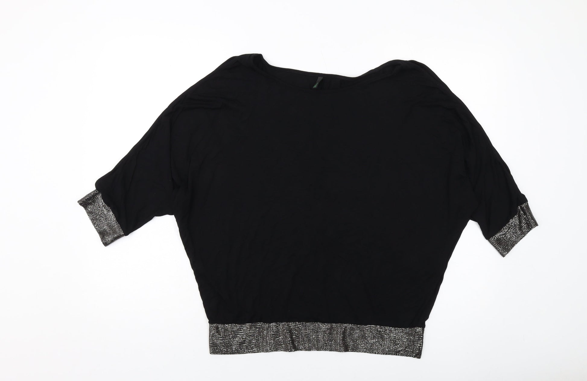 United Colors of Benetton Womens Black Viscose Basic Blouse Size M Round Neck
