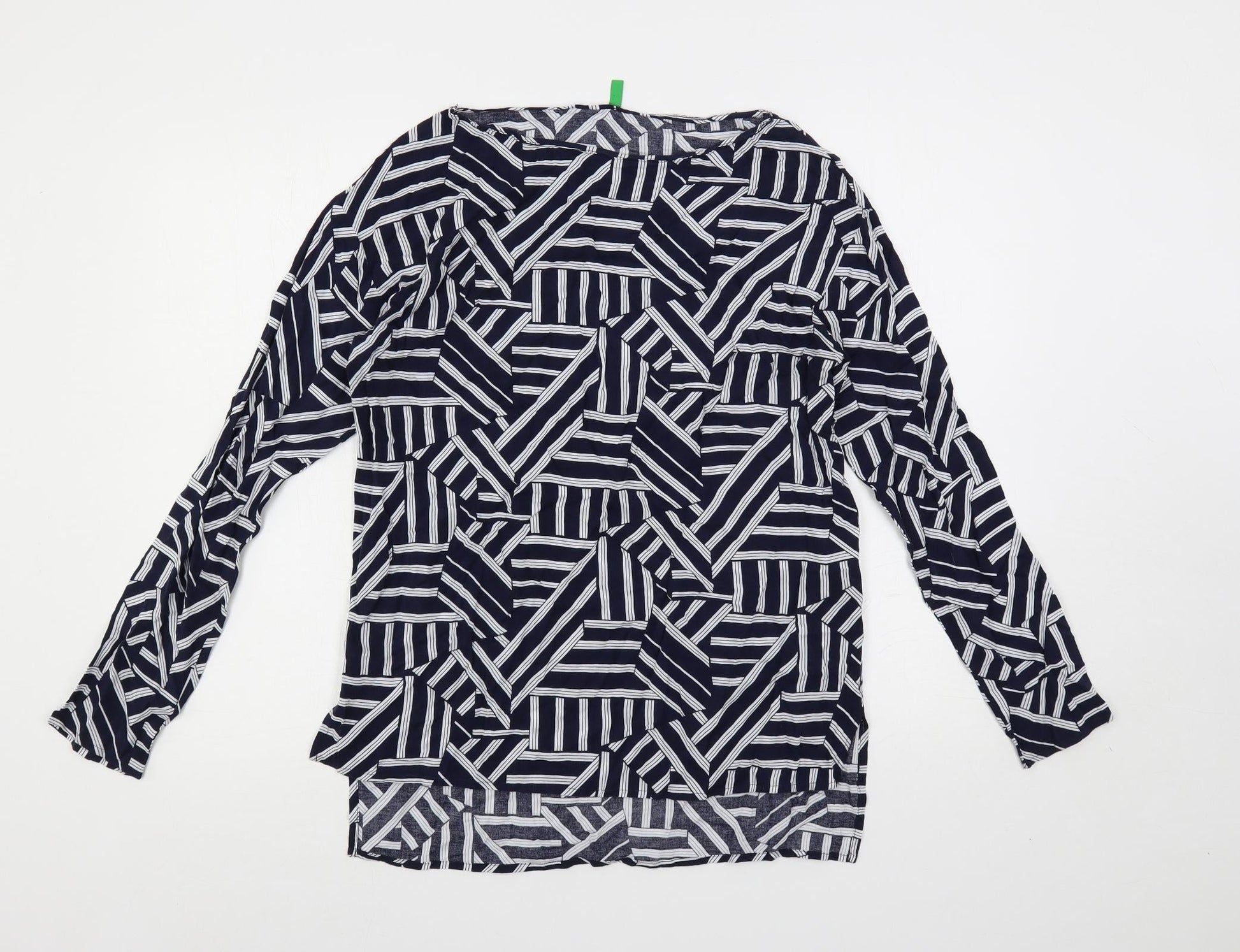 United Colors of Benetton Womens Blue Geometric Viscose Basic Blouse Size S Boat Neck