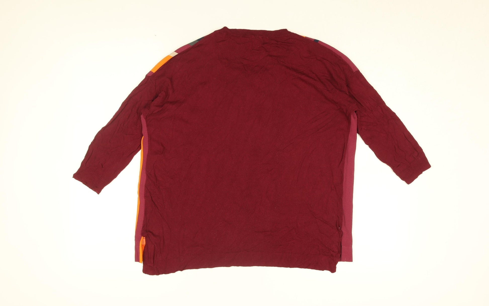 United Colors of Benetton Womens Red Striped Polyester Basic Blouse Size M Round Neck