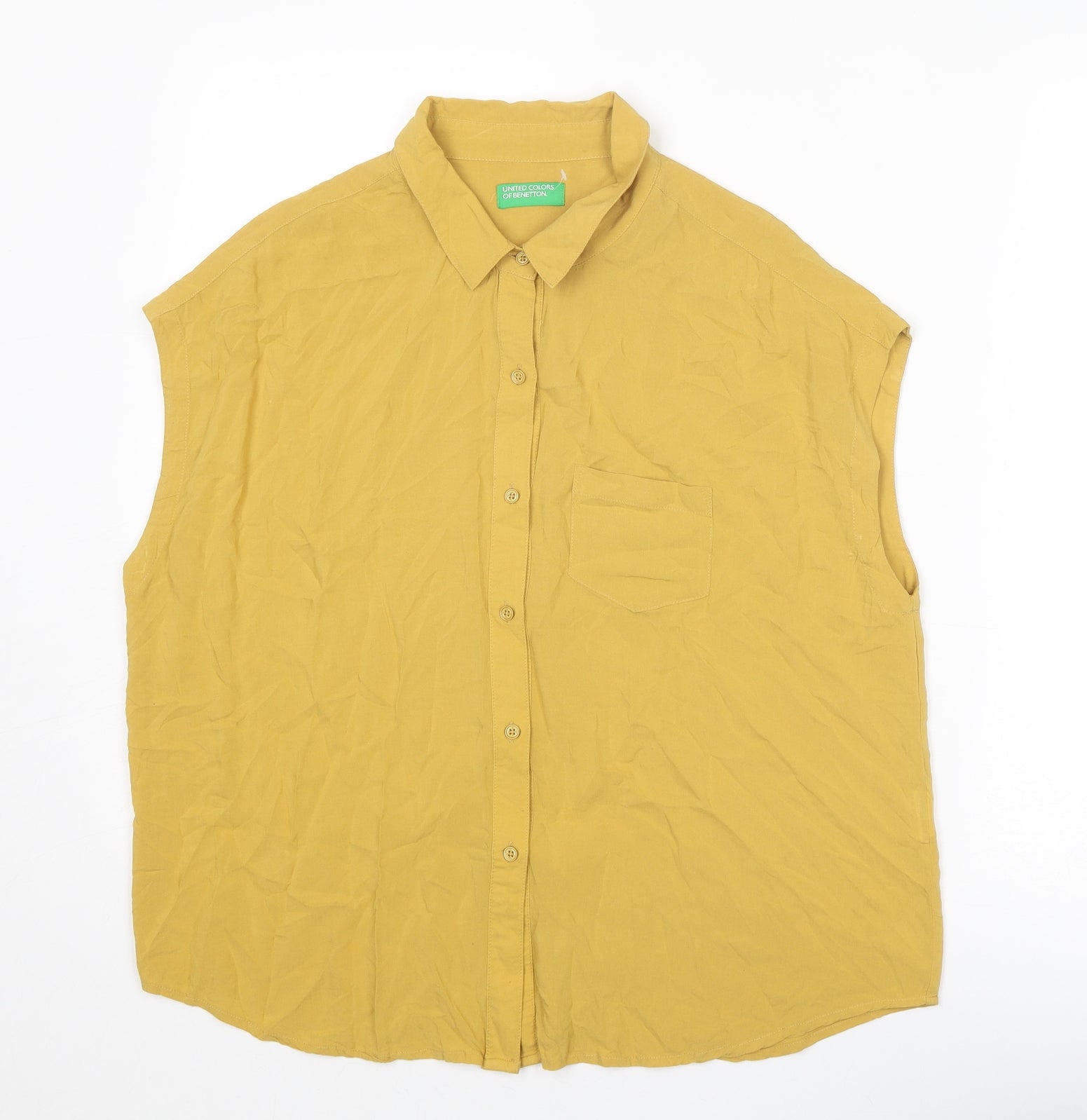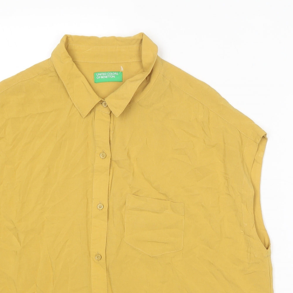 United Colors of Benetton Womens Yellow Polyester Basic Button-Up Size M Collared